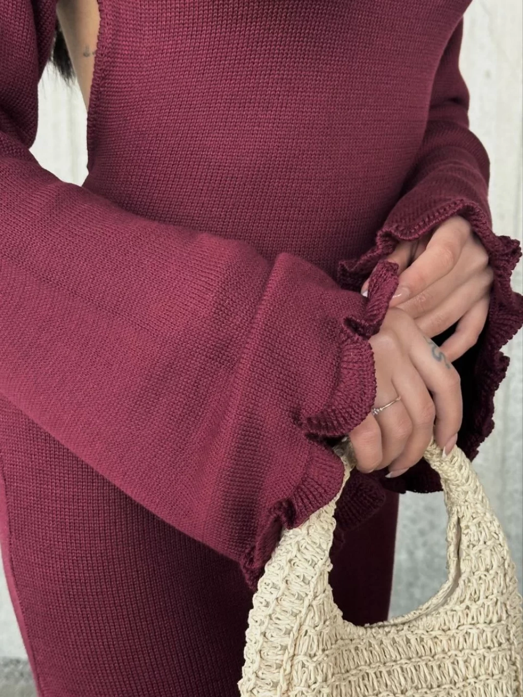 DetayAcık Sırt Detaylı , Çan Kollu , Fırfır