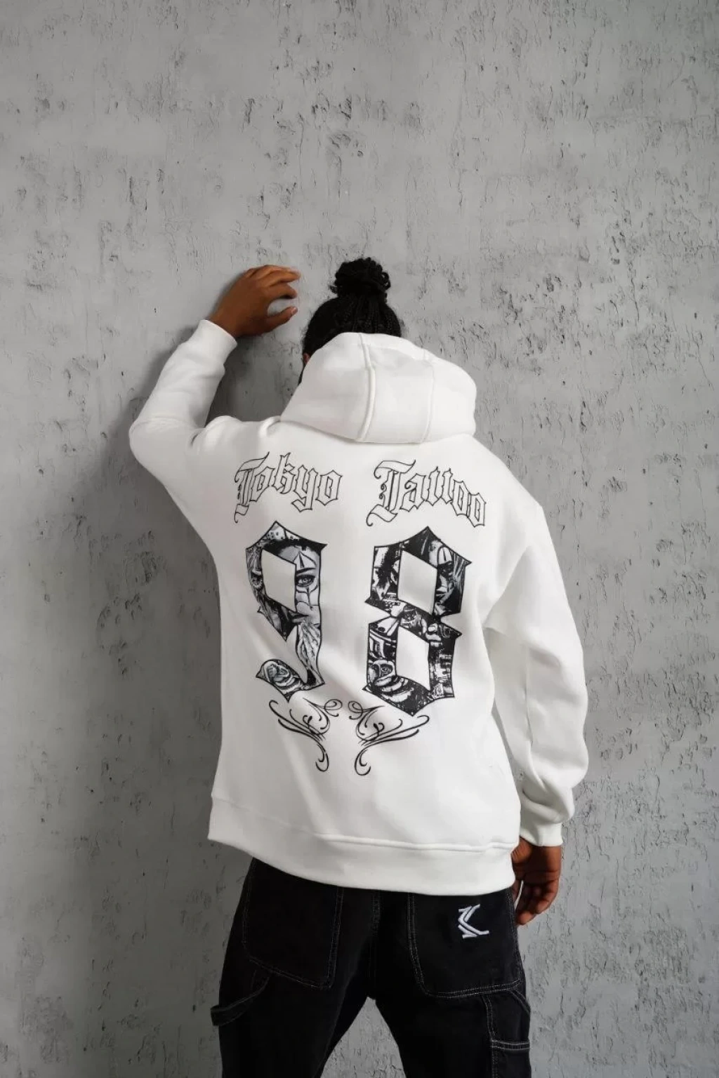 Erkek 98 Baskılı Kapşonlu Sweat - Beyaz