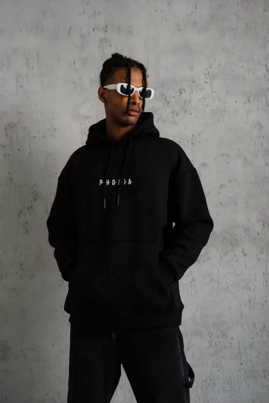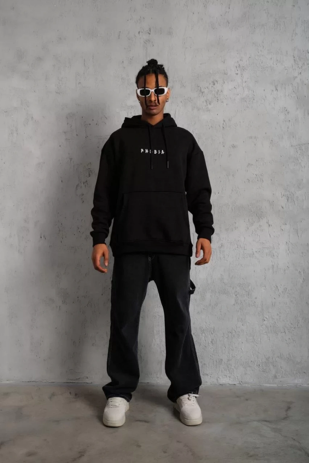 Erkek Astronot Baskılı Kapüşonlu Sweat - Siyah