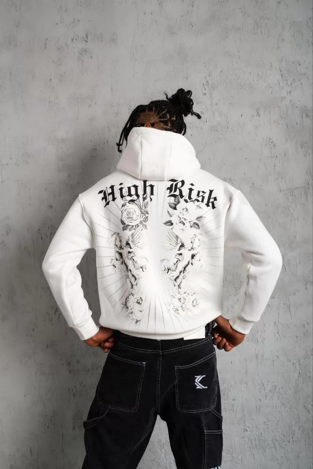 Erkek Baskılı Kapşonlu Sweat - Beyaz