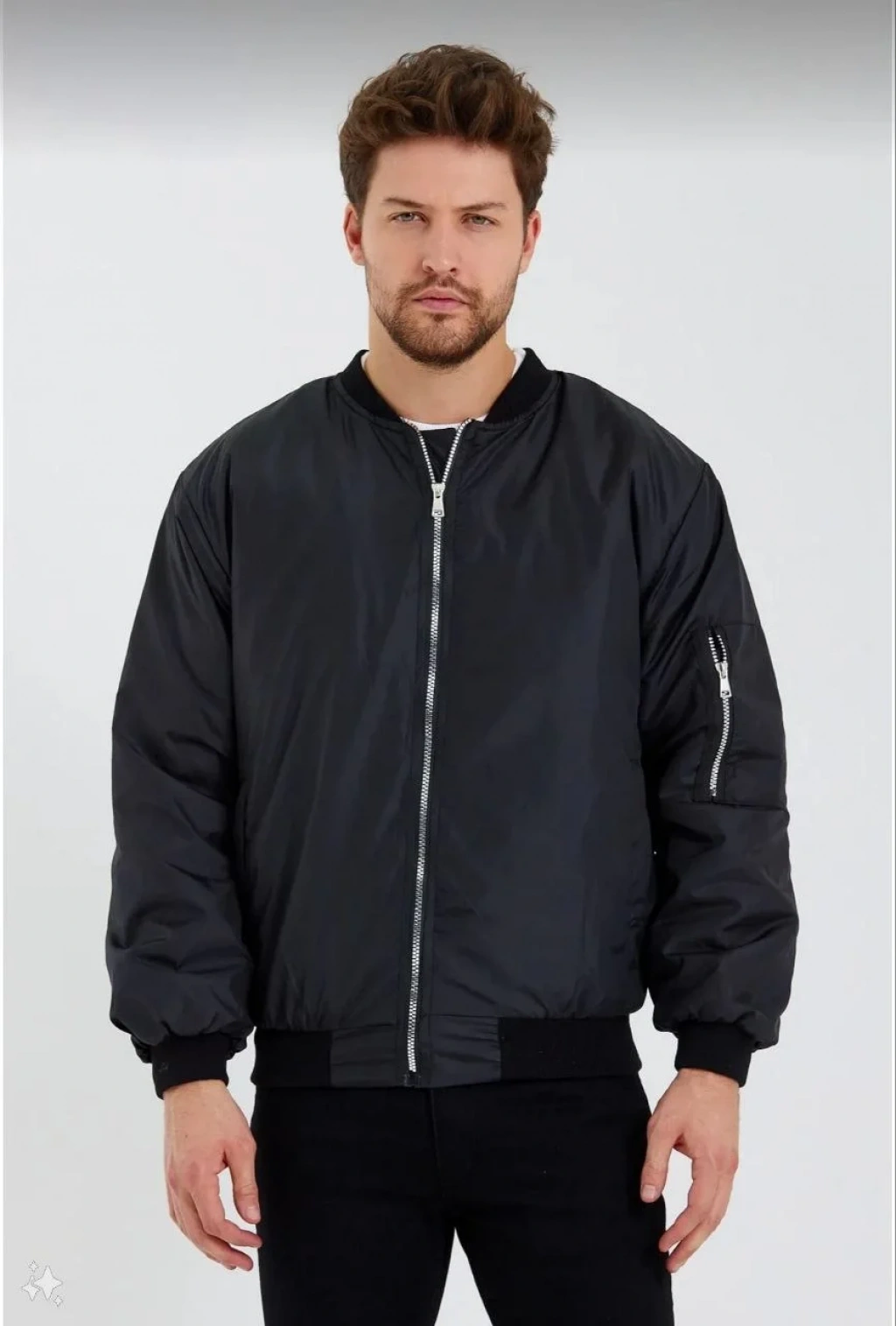 Unisex Siyah Bomber Mont – Su İtici Kumaş, Kapitone Astarlı, Fermuarlı ve Günlük Kullanıma Uygun Ceket- Siyah