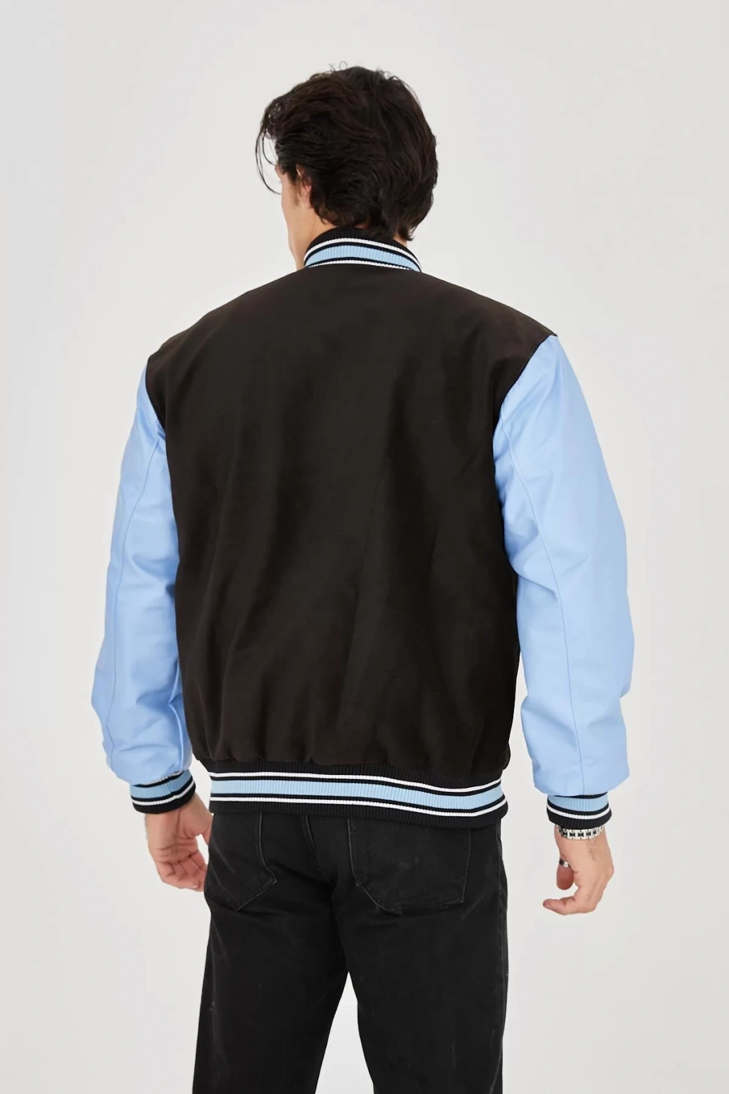 Erkek İçten Elyaf ve Astarlı Kolları Suni Deri Ceket - Mavi