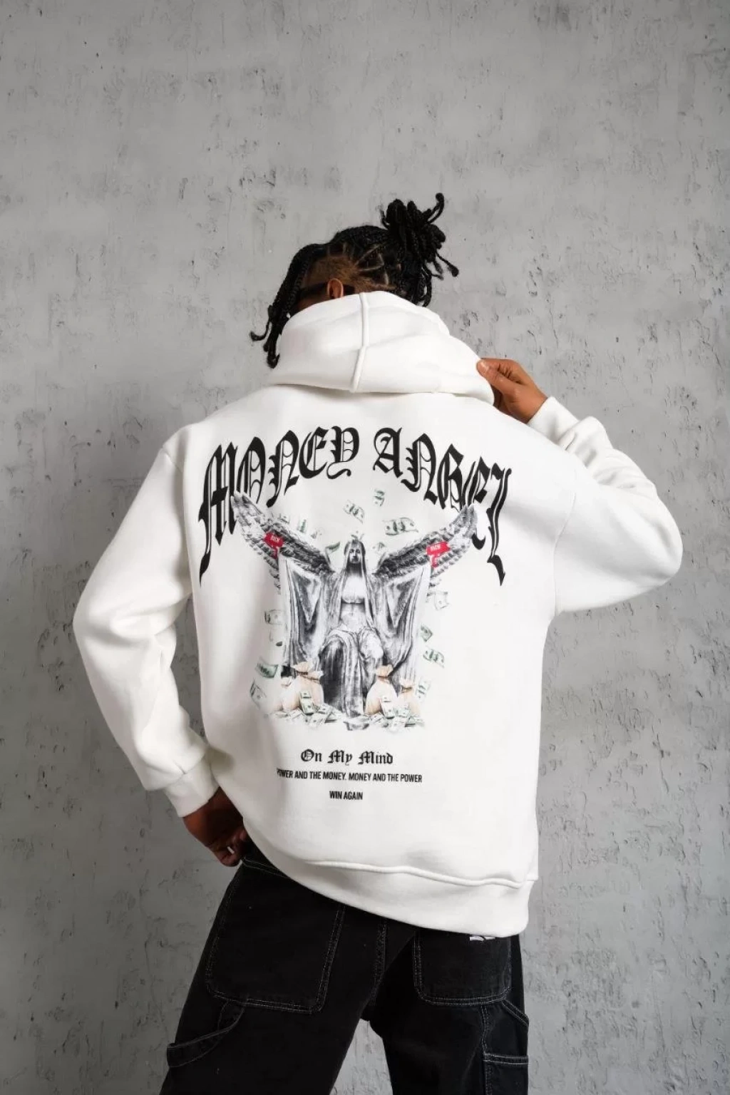 Erkek Kordon İpli Baskılı Kapüşonlu Sweatshirt - Beyaz