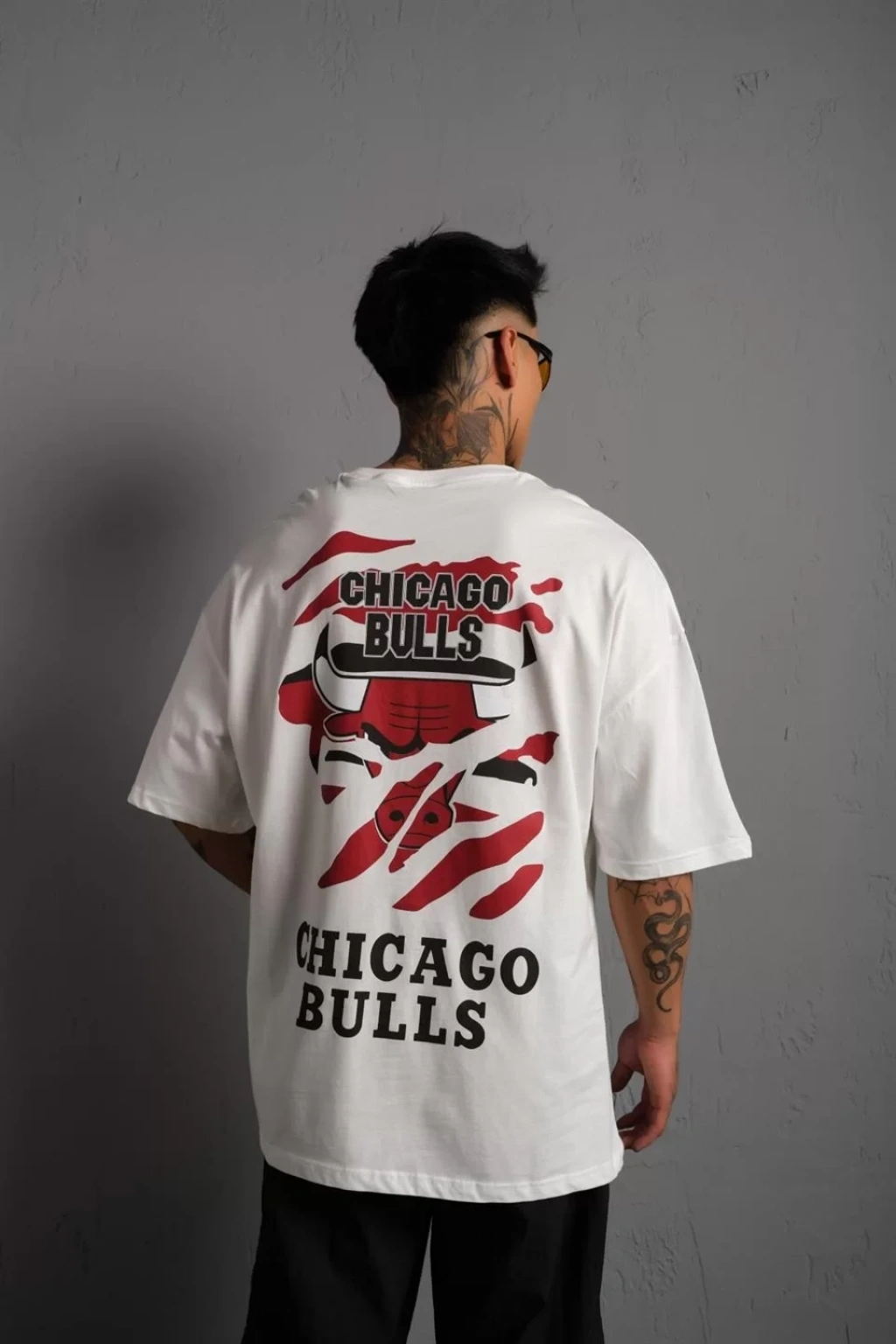Erkek Sırt Baskılı A Kalite Oversize T-shirt - Beyaz