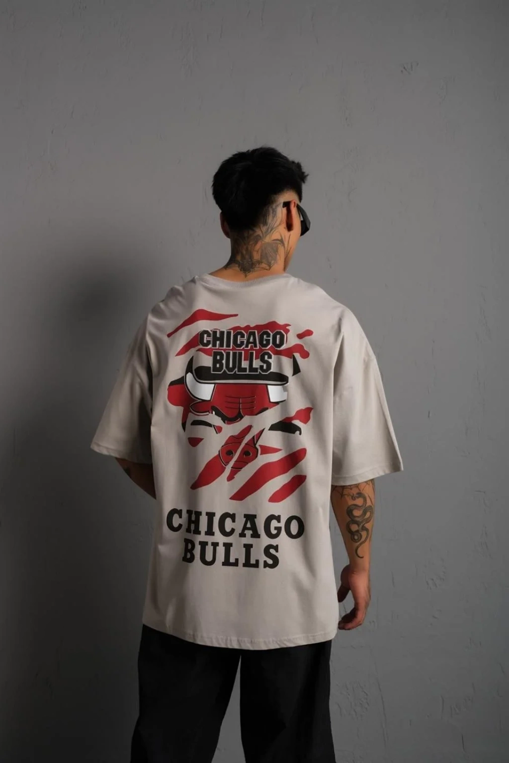 Erkek Sırt Baskılı A Kalite Oversize T-shirt - Gri