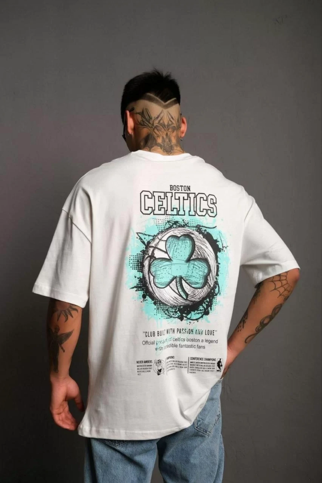 Erkek Sırt Baskılı T-shirt - Beyaz