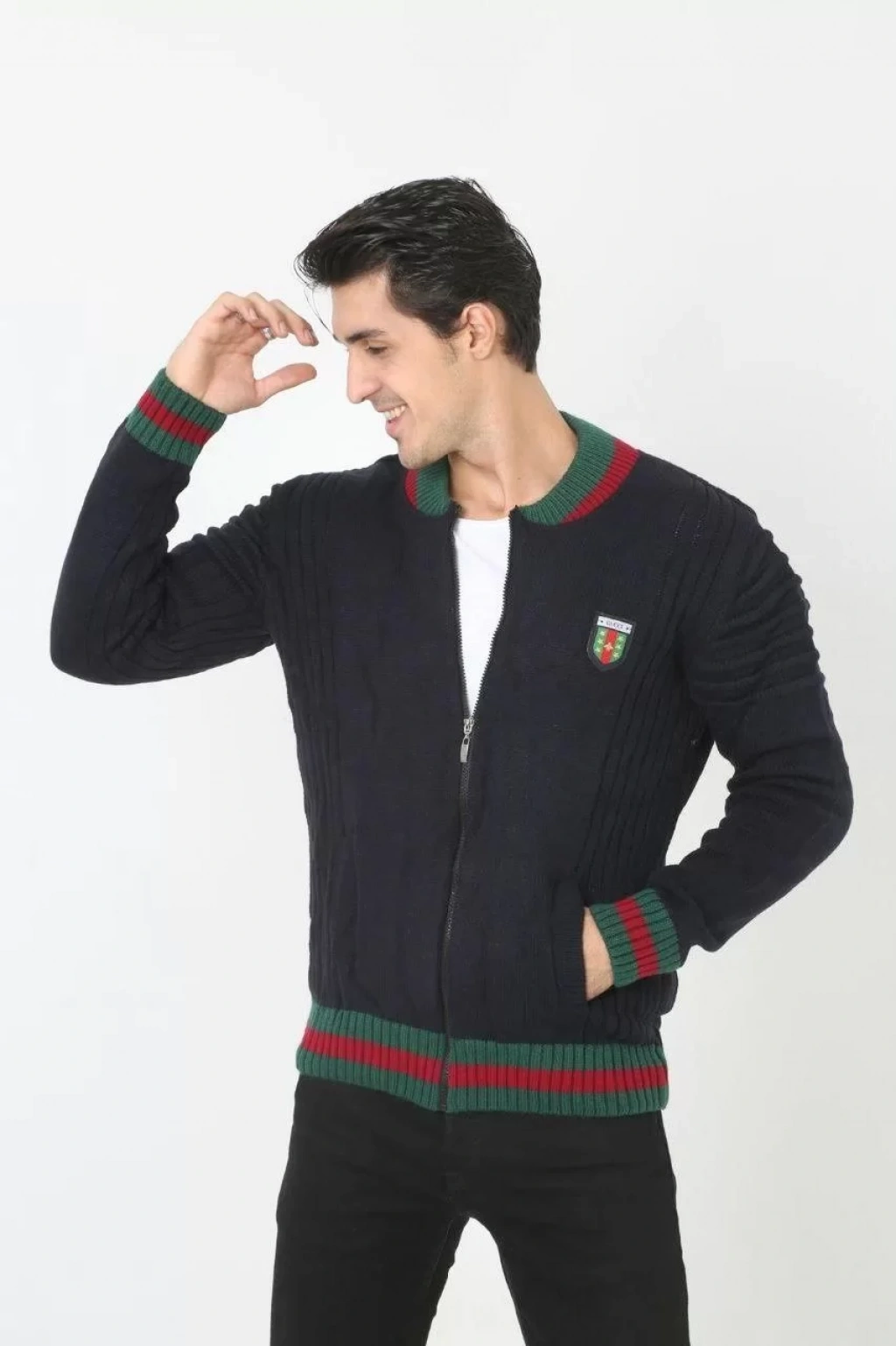 Erkek Tam Fermuarlı Triko Hırka - Lacivert