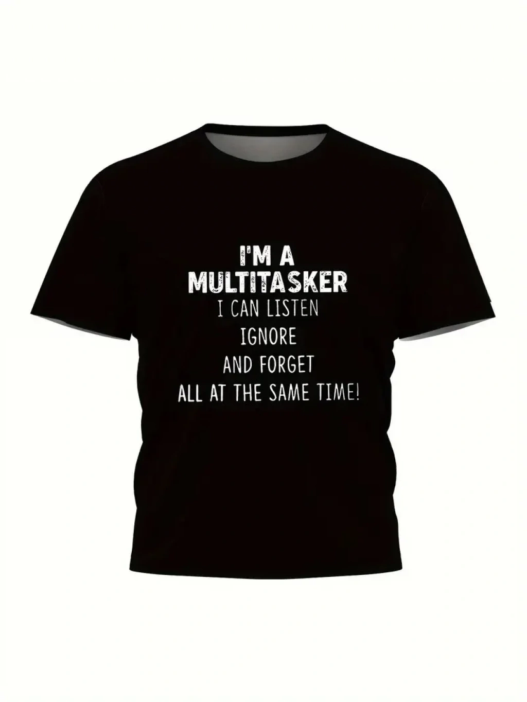 Erkekler İçin Tişörtler, Komik 'Multitasker' Baskılı Tişört, Yaz İlkbahar Sonbahar İçin Günlük Kısa Kollu Oversize Tişört, Hediye Olarak Üstler - Siyah
