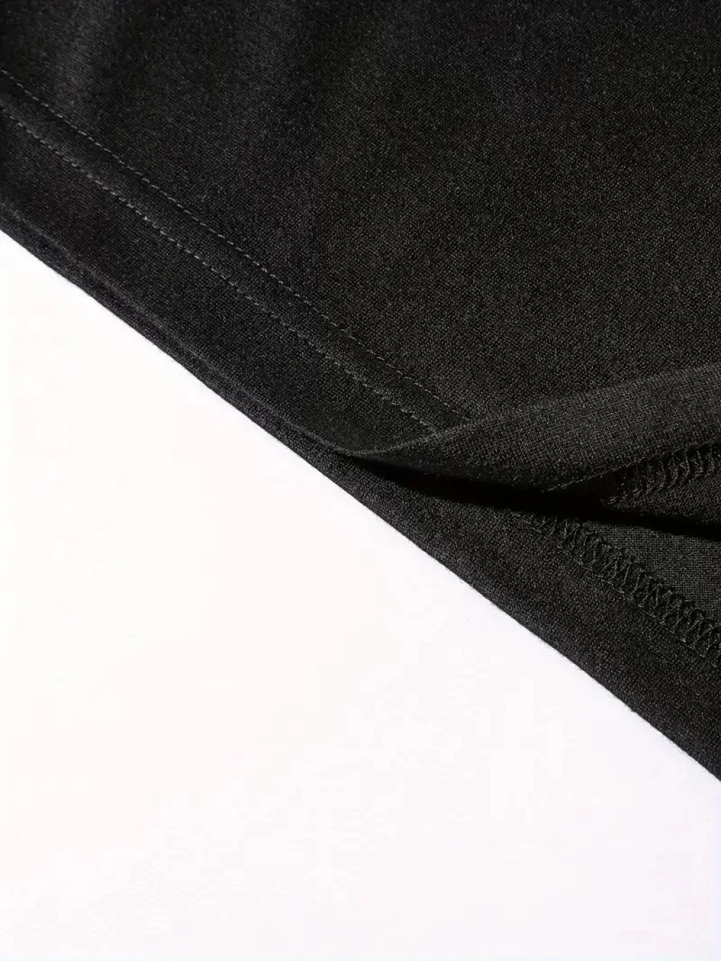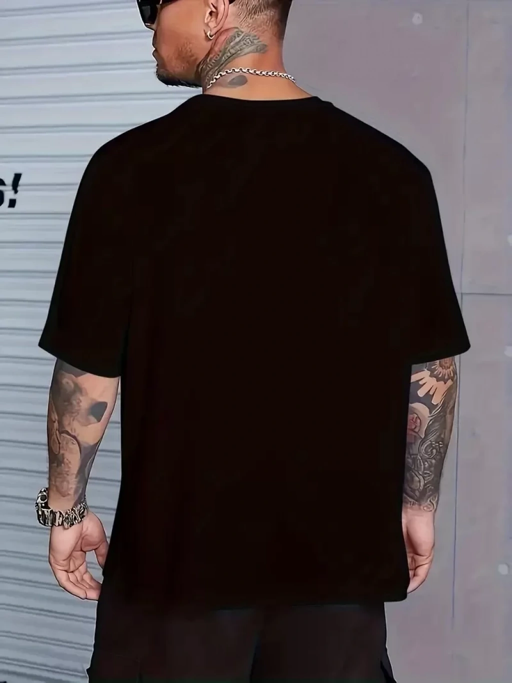 Eşsiz Baskı Tasarımlı Şık Büyük Beden Erkek Tişörtü - Rahat Polyester, Makinede Yıkanabilir, Yuvarlak Yaka - Her Mevsim İçin Mükemmel - Siyah