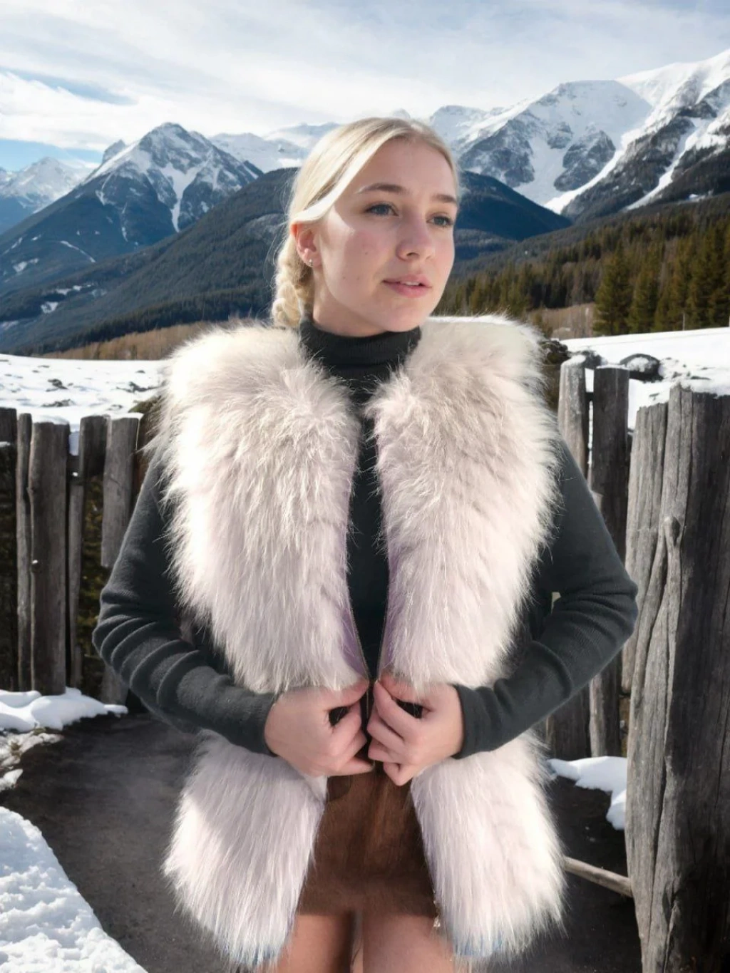 Kadın Fermuarlı Koyun Derisi Tilki Kürkü - Beyaz