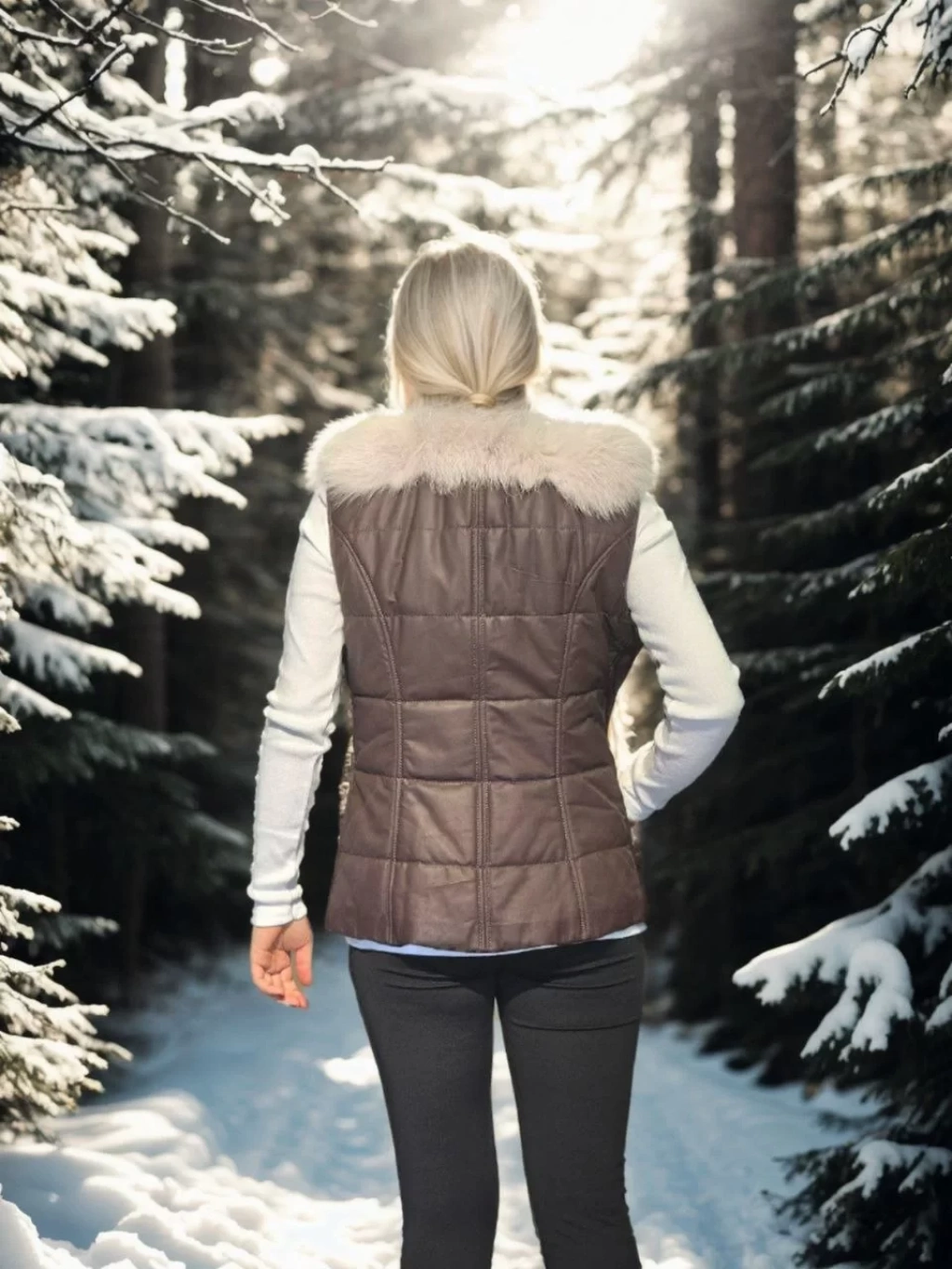 Kadın Kolsuz Fermuarlı Yelek - Kahve