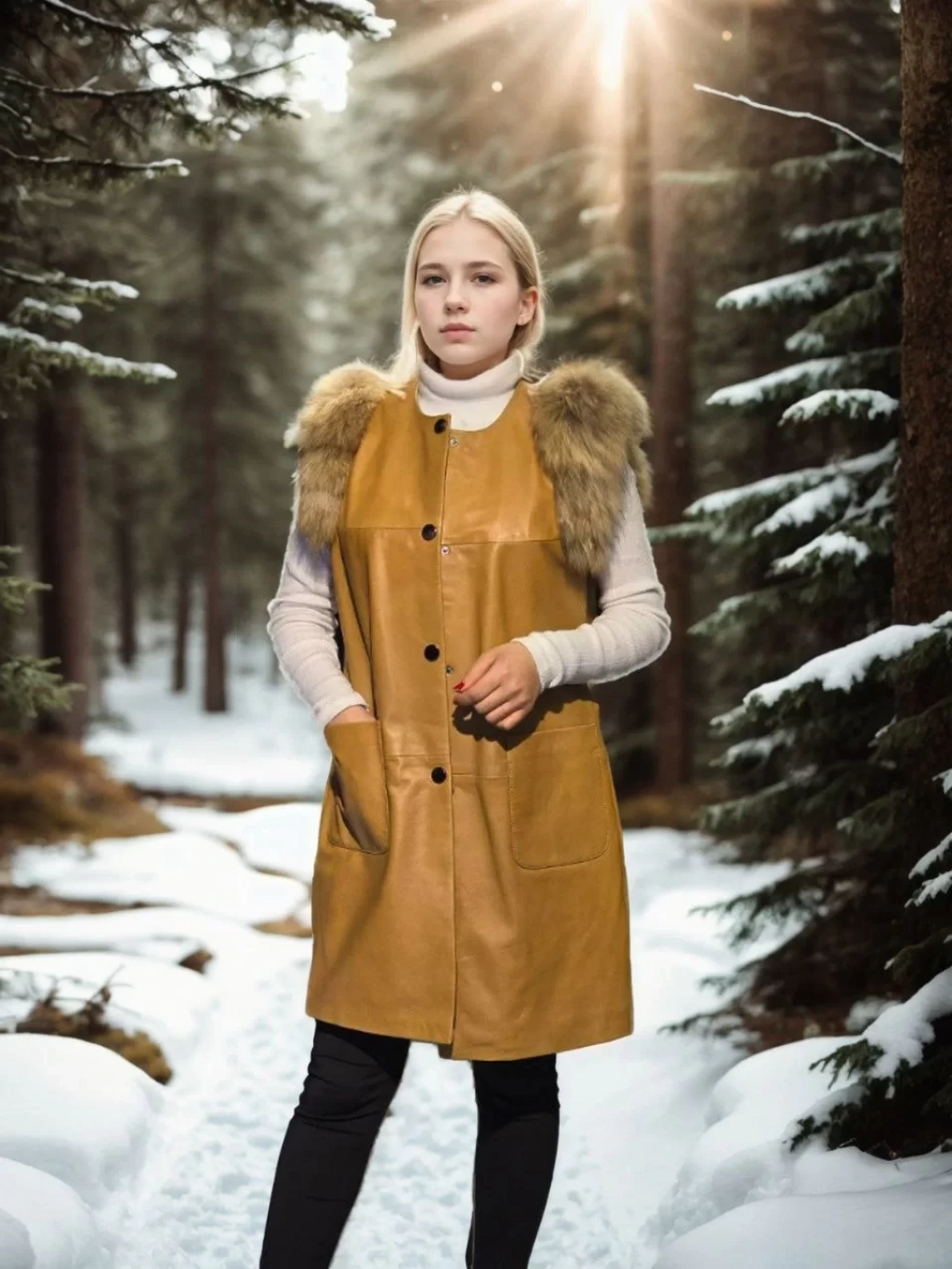 Kadın Kolsuz Hakiki Deri Kürk - Hardal