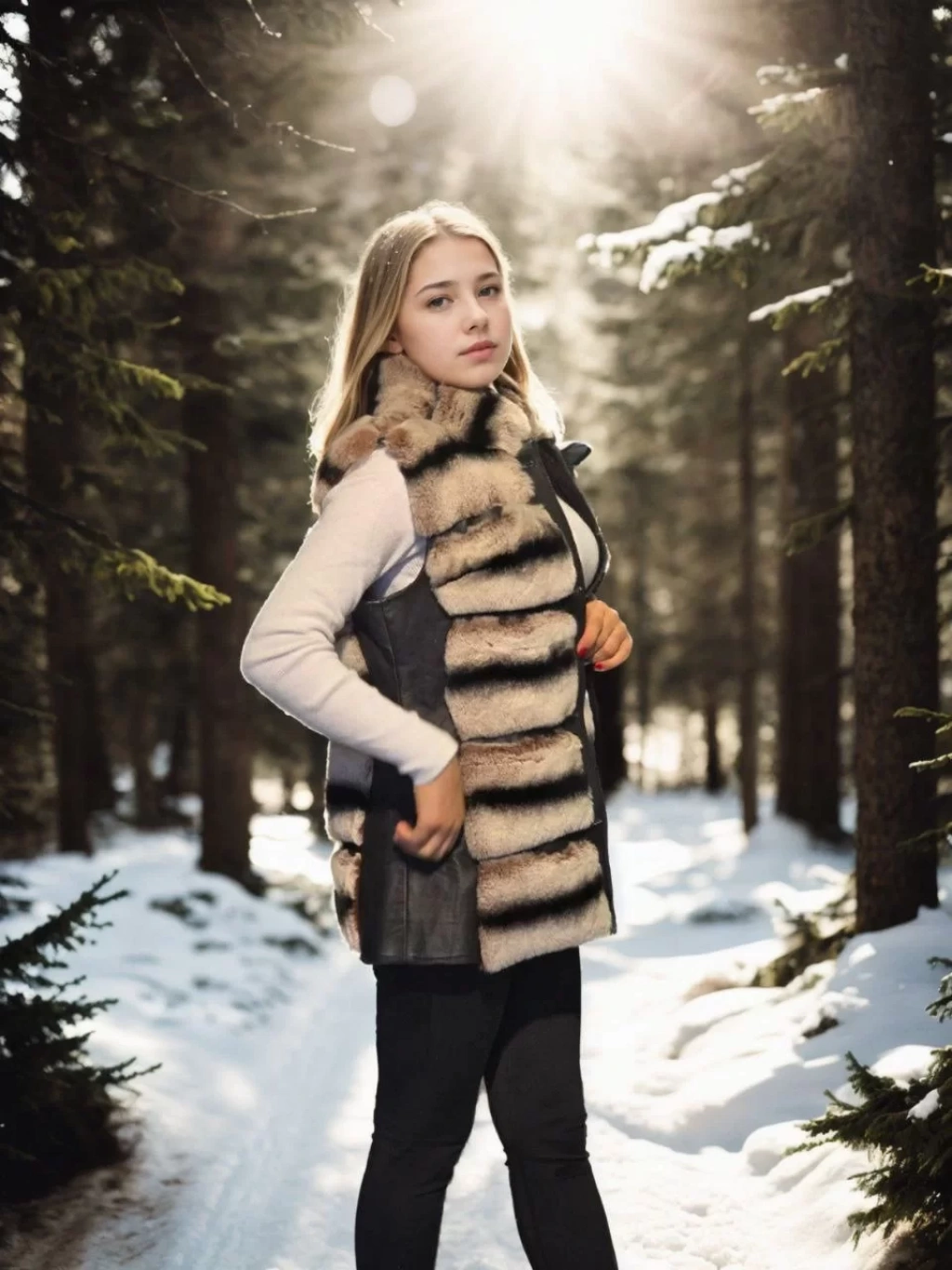 Kadın Kolsuz Hakiki Deri Kürk - Siyah