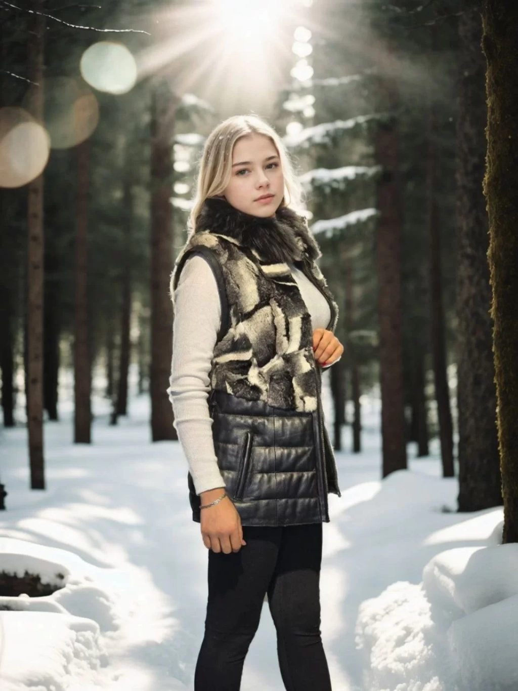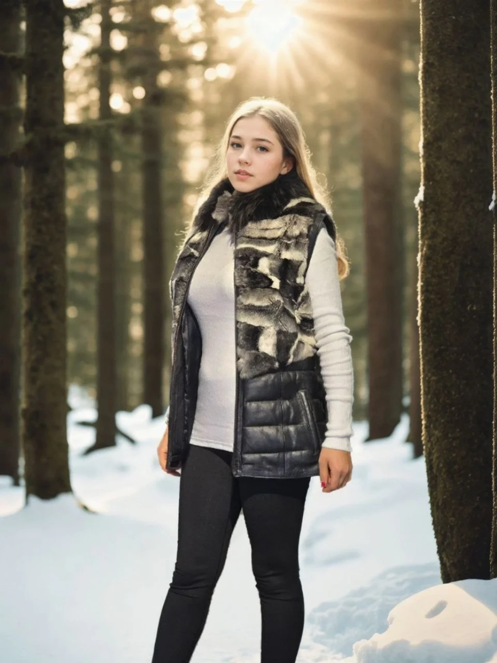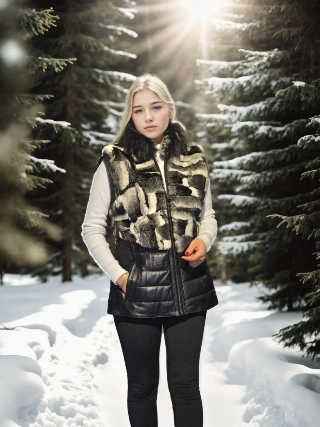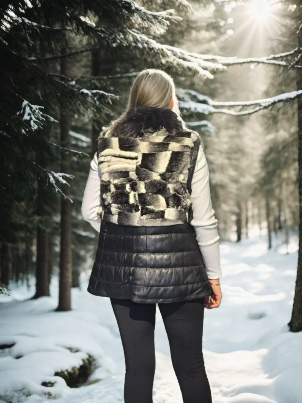 Kadın Kolsuz Hakiki Deri Kürk - Siyah