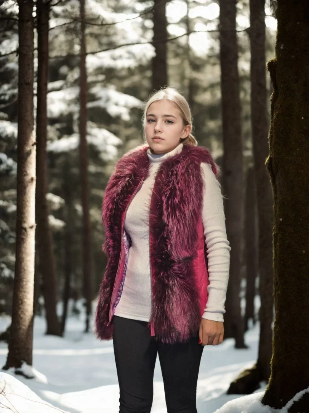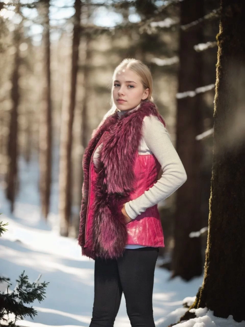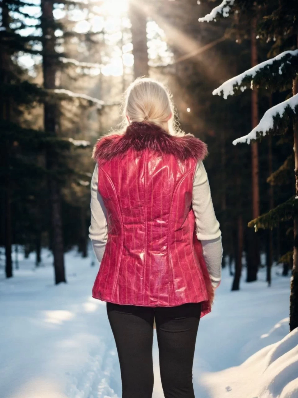 Kadın Kolsuz Hakiki Yelek - Fuşya