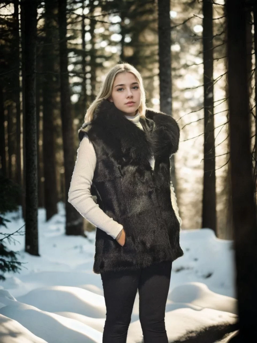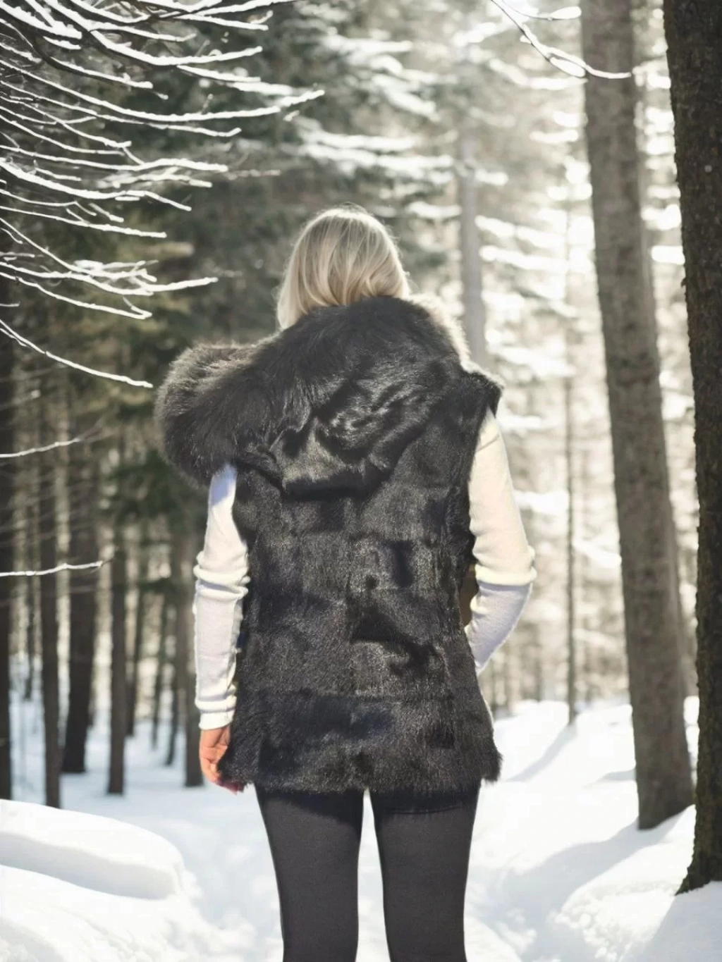 Kadın Kolsuz Kapüşonlu Yelek - Siyah