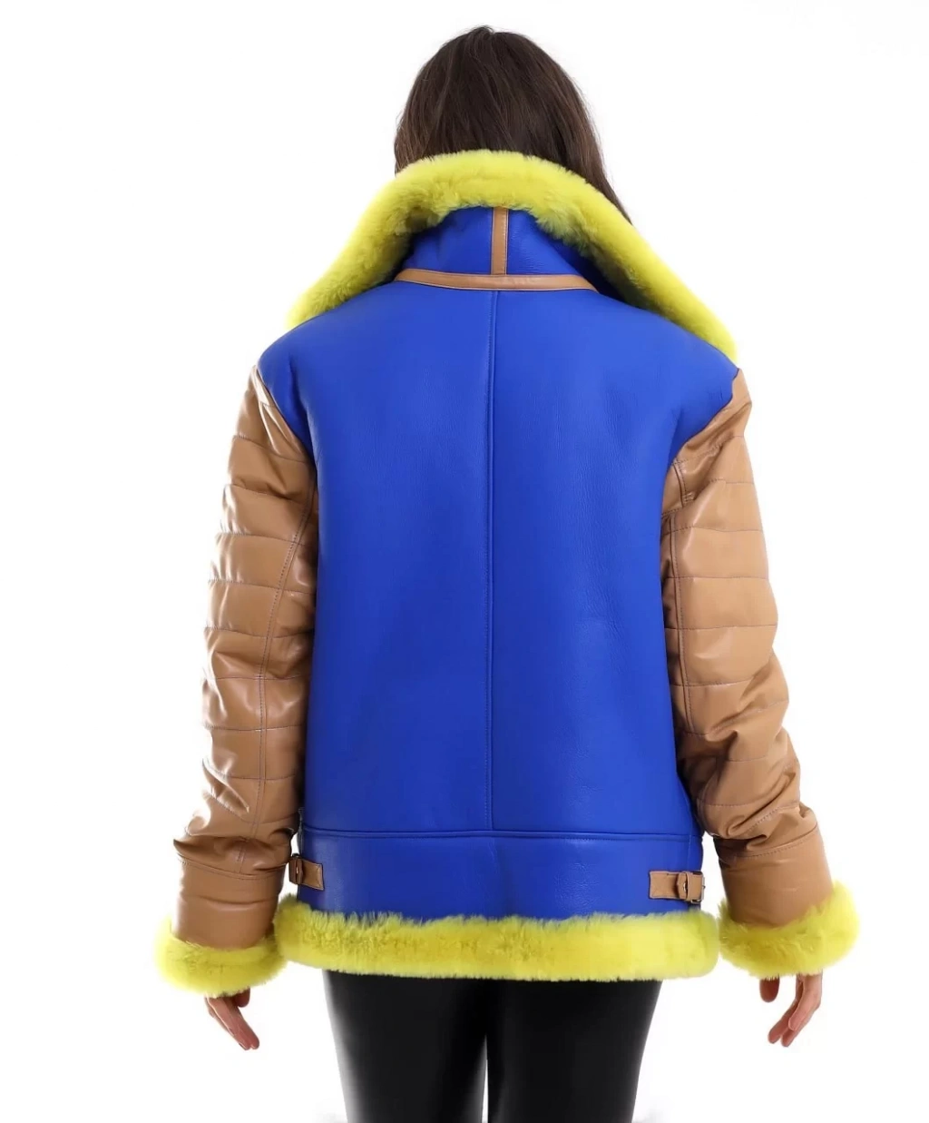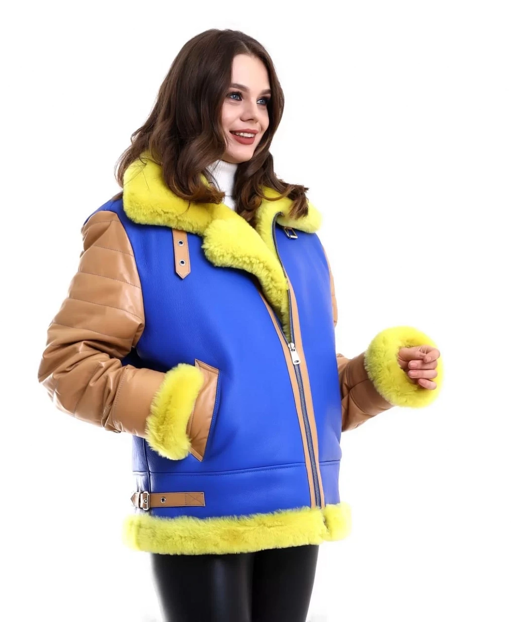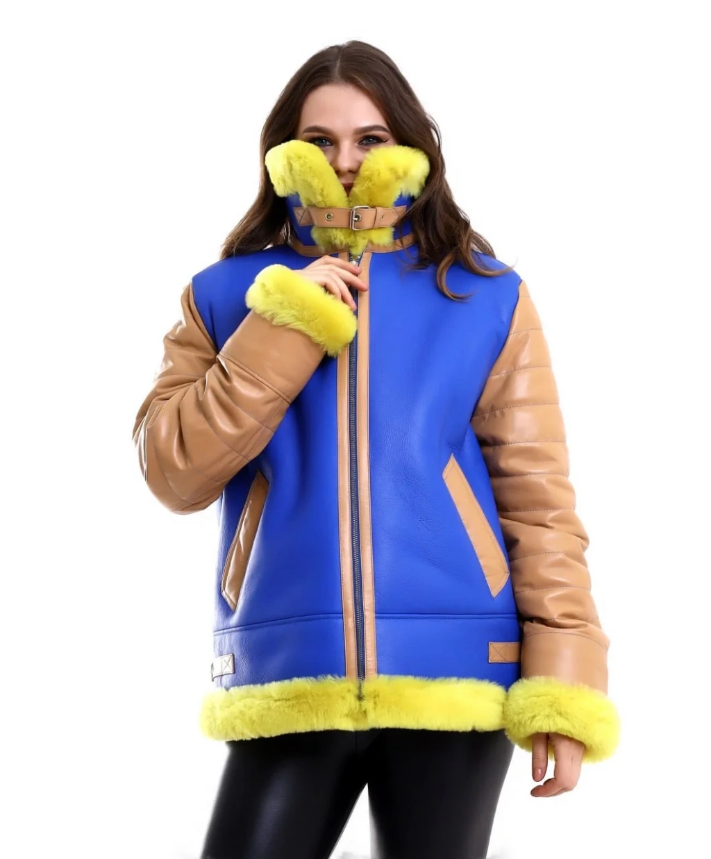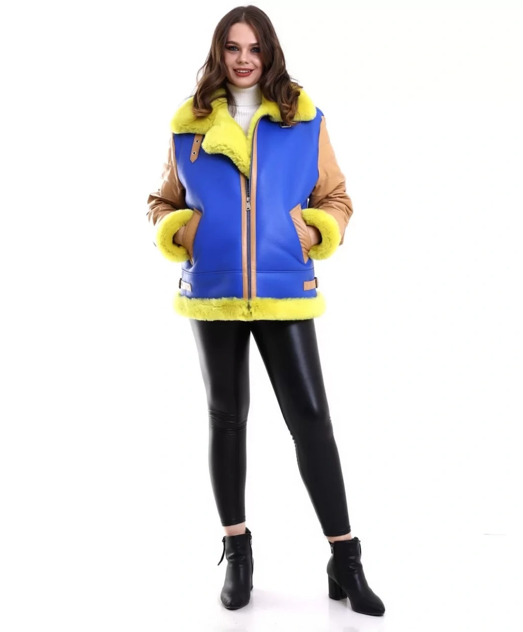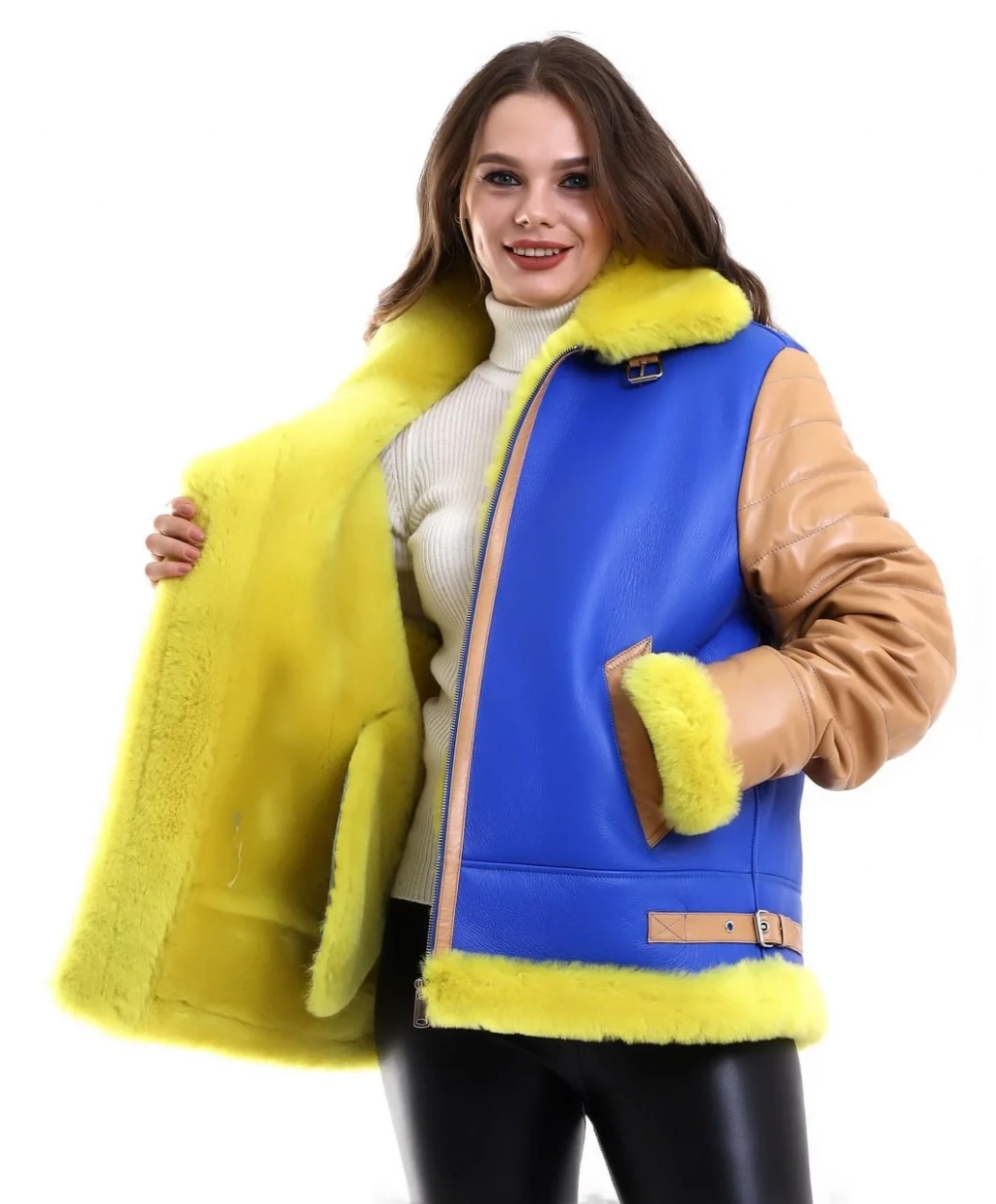 Kadın Koyun Derisi Pilot Hakiki Kürk - Sarı