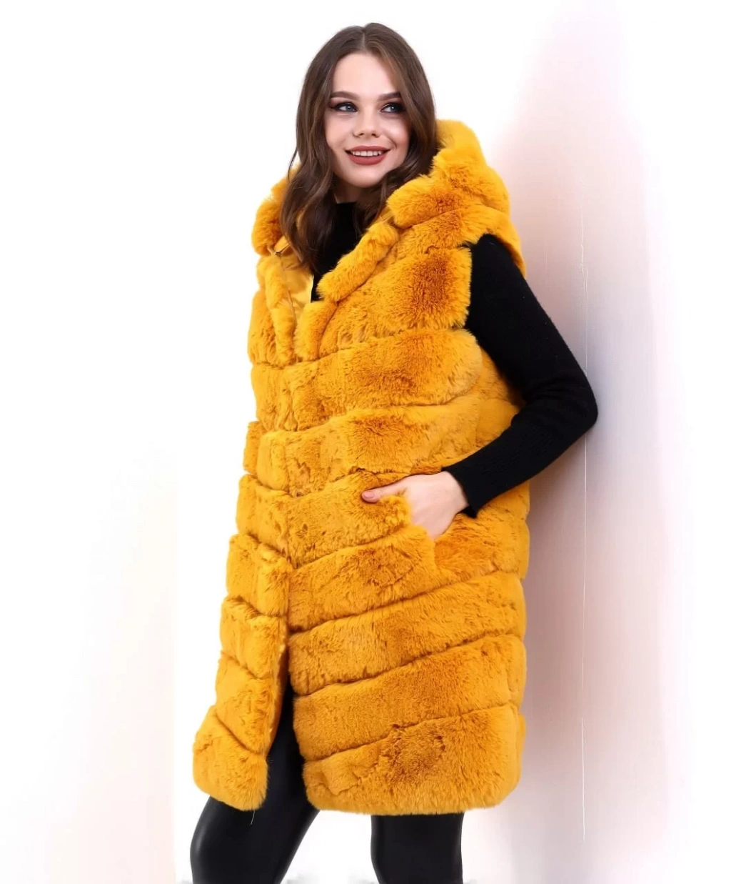 Kadın Reks Kapüşonlu Yelek - Sarı