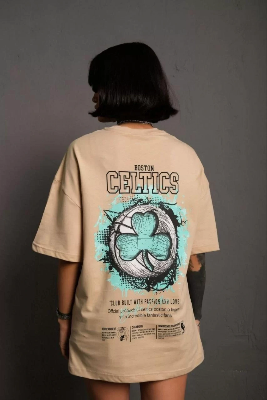Kadın Sırt Baskılı T-shirt - Bej