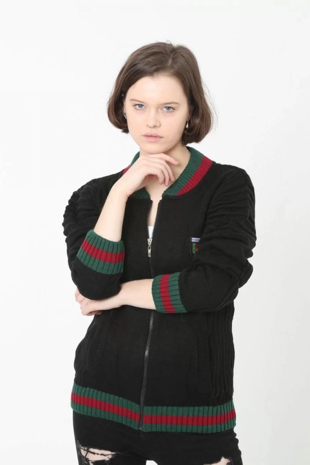 Kadın Tam Fermuarlı Triko Hırka - Siyah