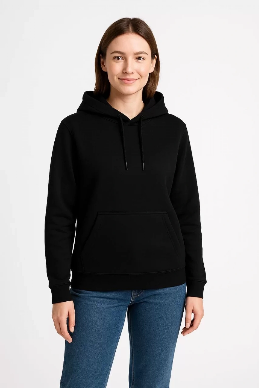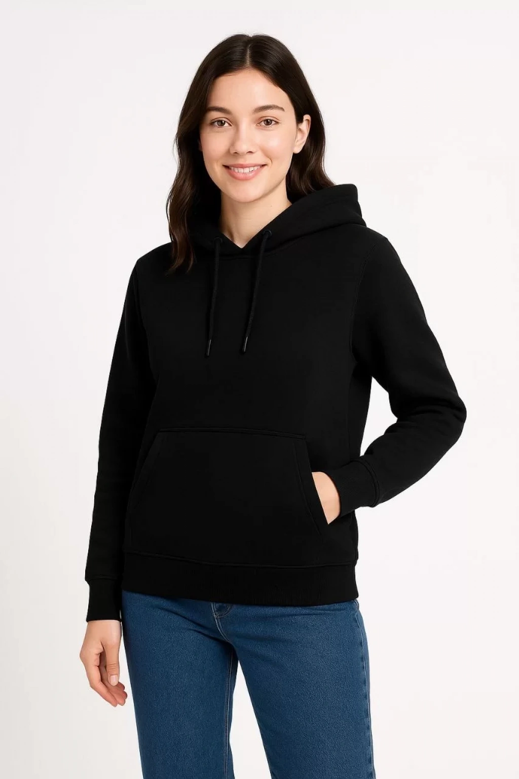 Kadın Üç İplik Kapüşonlu Kanguru Cepli Sweatshirt hoodie - Siyah
