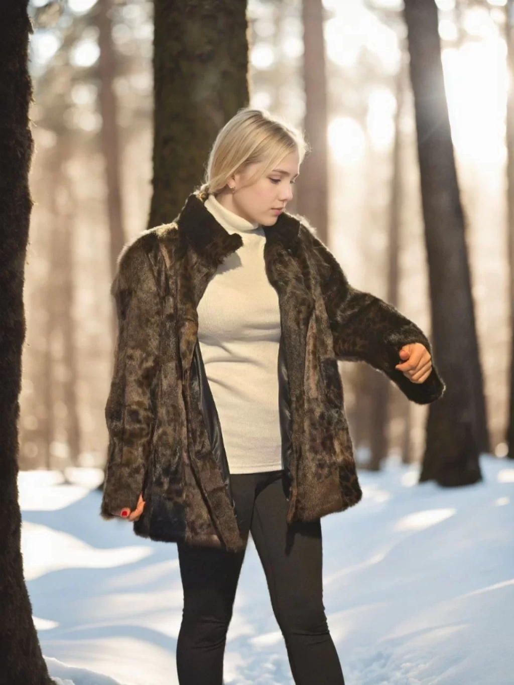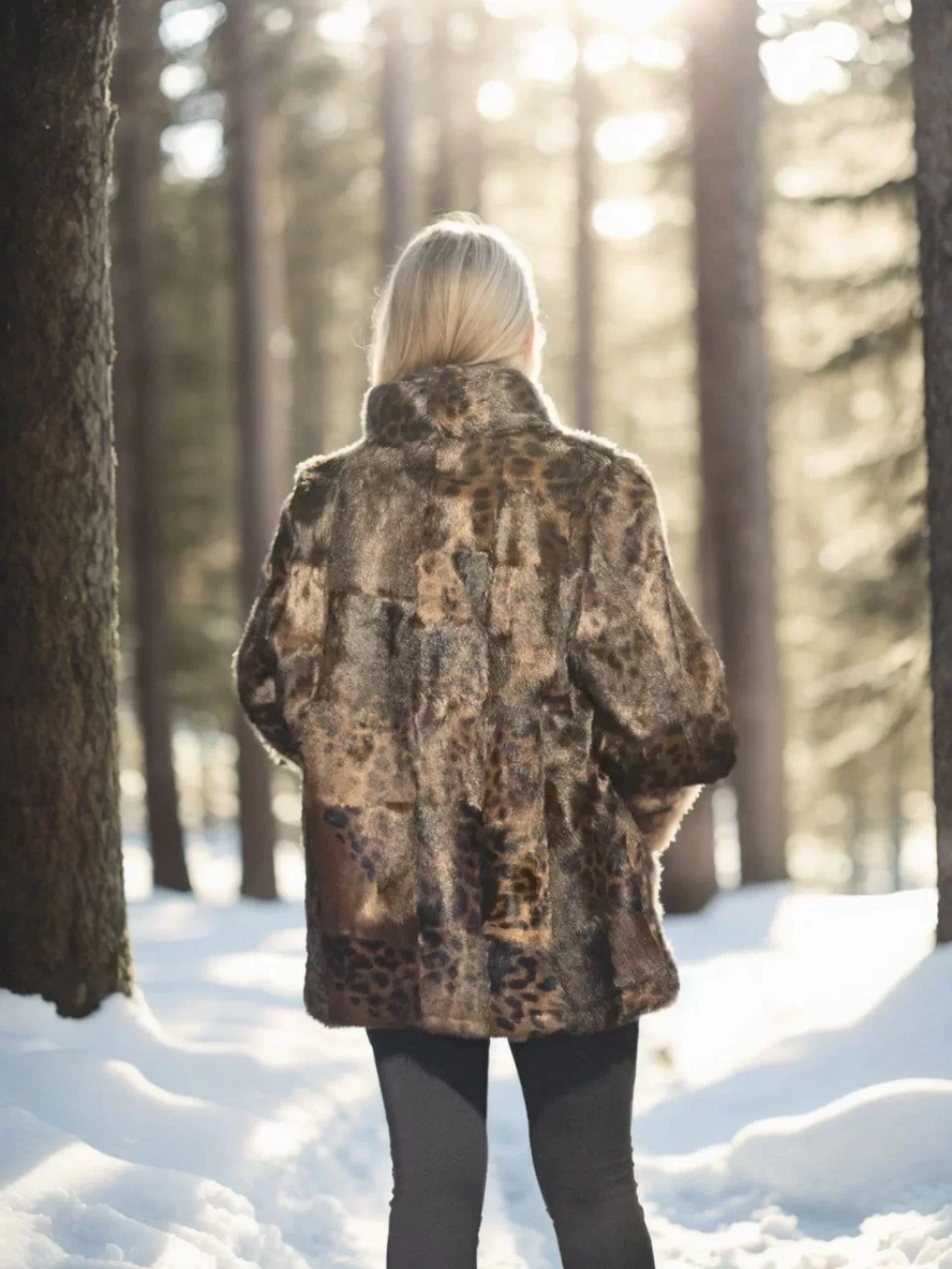 Kadın Uzun Kollu Deri Ceket - Leopar