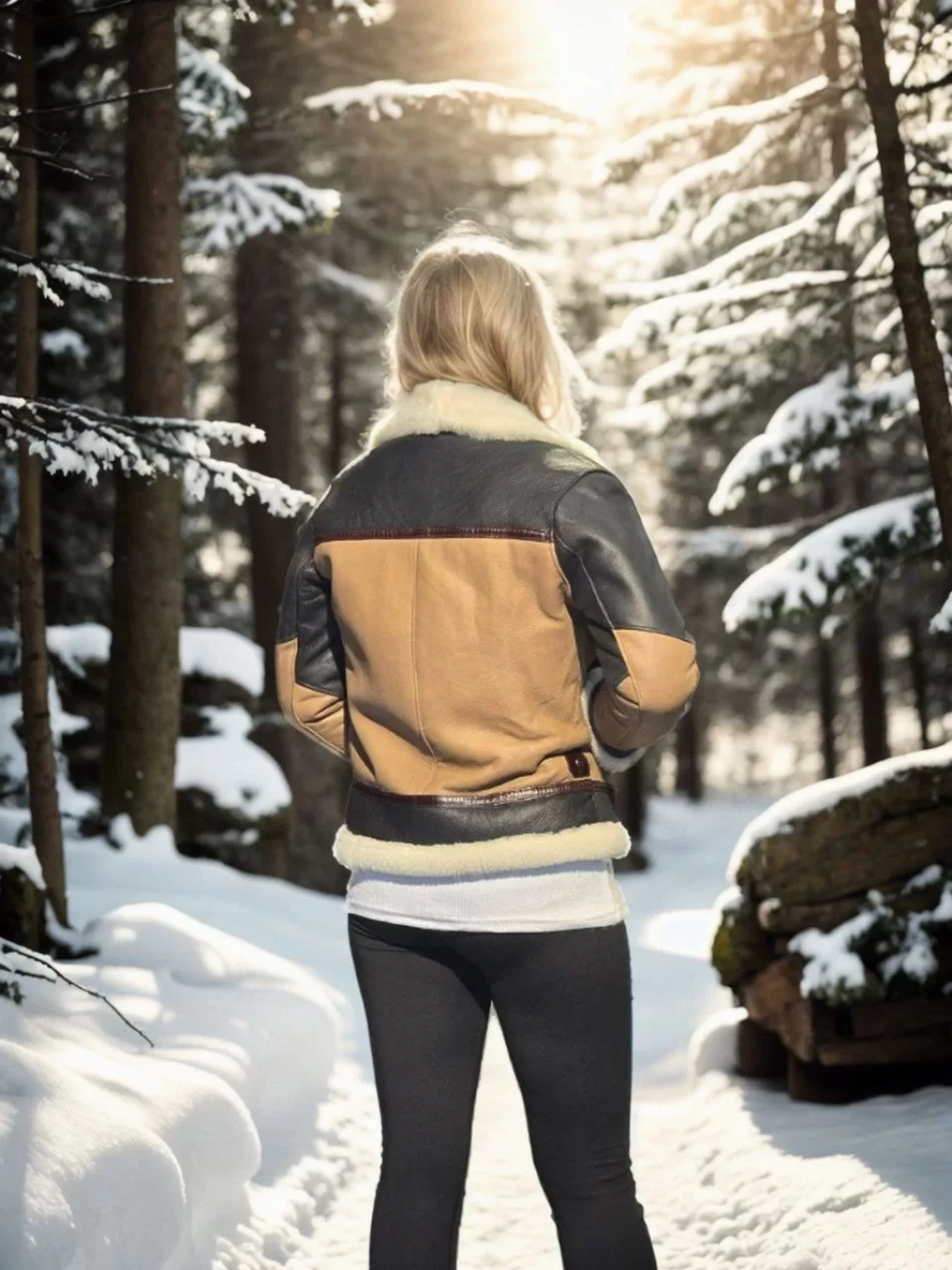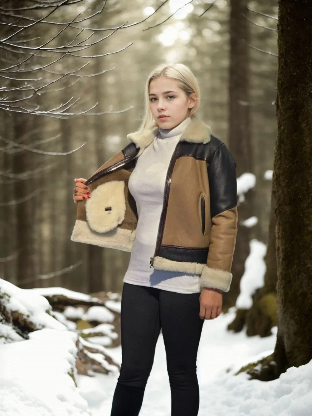 Kadın Uzun Kollu Yakalı Hakiki Kürk - Kahve