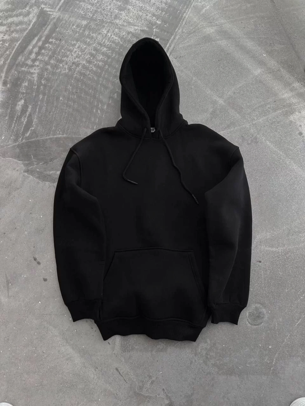 Kapüşonlu Üç İplik Penye Basic SweatShirt - Siyah