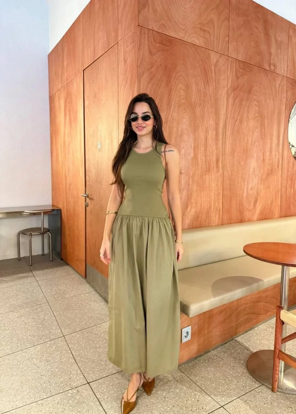 Düz Kesim : Sade ve zamansız tarzıyla her türlü kombinle uyum sağlar. Kolsuz yapısı, elbiseye hacim ve hareket kazandırarak feminen bir siluet yaratır.