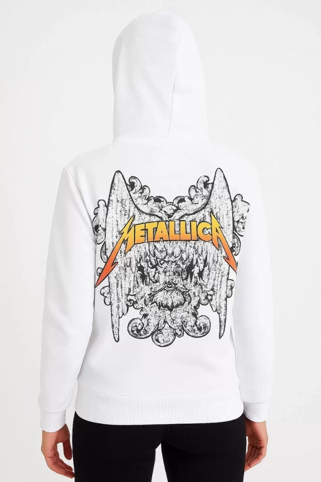 Metallica İki İplik Kapüşonlu Ön ve Arka Baskılı hoodie - Beyaz
