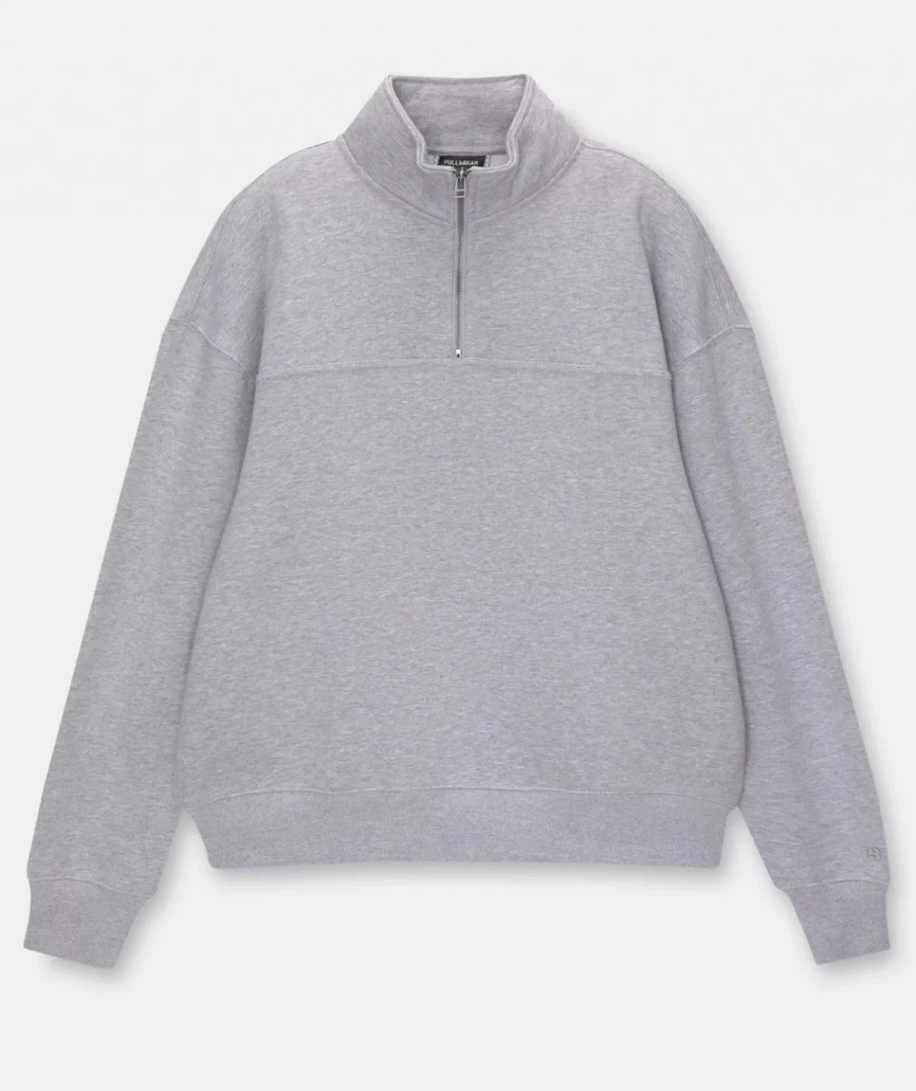 Oversize Yarım Farmuarlı Yakalı Basic SweatShirt - Gri