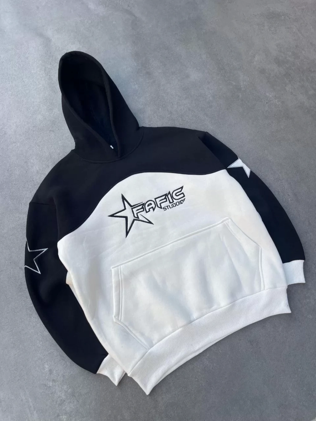 Parçalı Nakış İşlemelı Kapüşonlu SweatShirt - Siyah