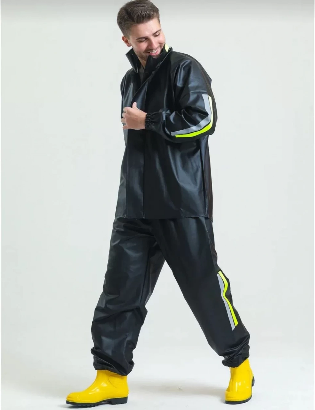 Premium Motorcu Kurye Yağmurluk Takım Su Geçirmez PVC Kumaş Reflektörlü TÜBİTAK Onaylı - Siyah