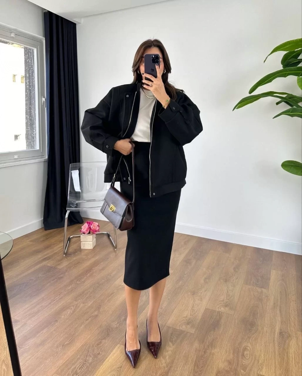 RYSE Kadın Mevsim Kaşe Fermuarlı Ceket Etek Takım Kaşmir Ceket Etekli  İkili Takım Kaşe Bomber Ceket-Etek Takım
