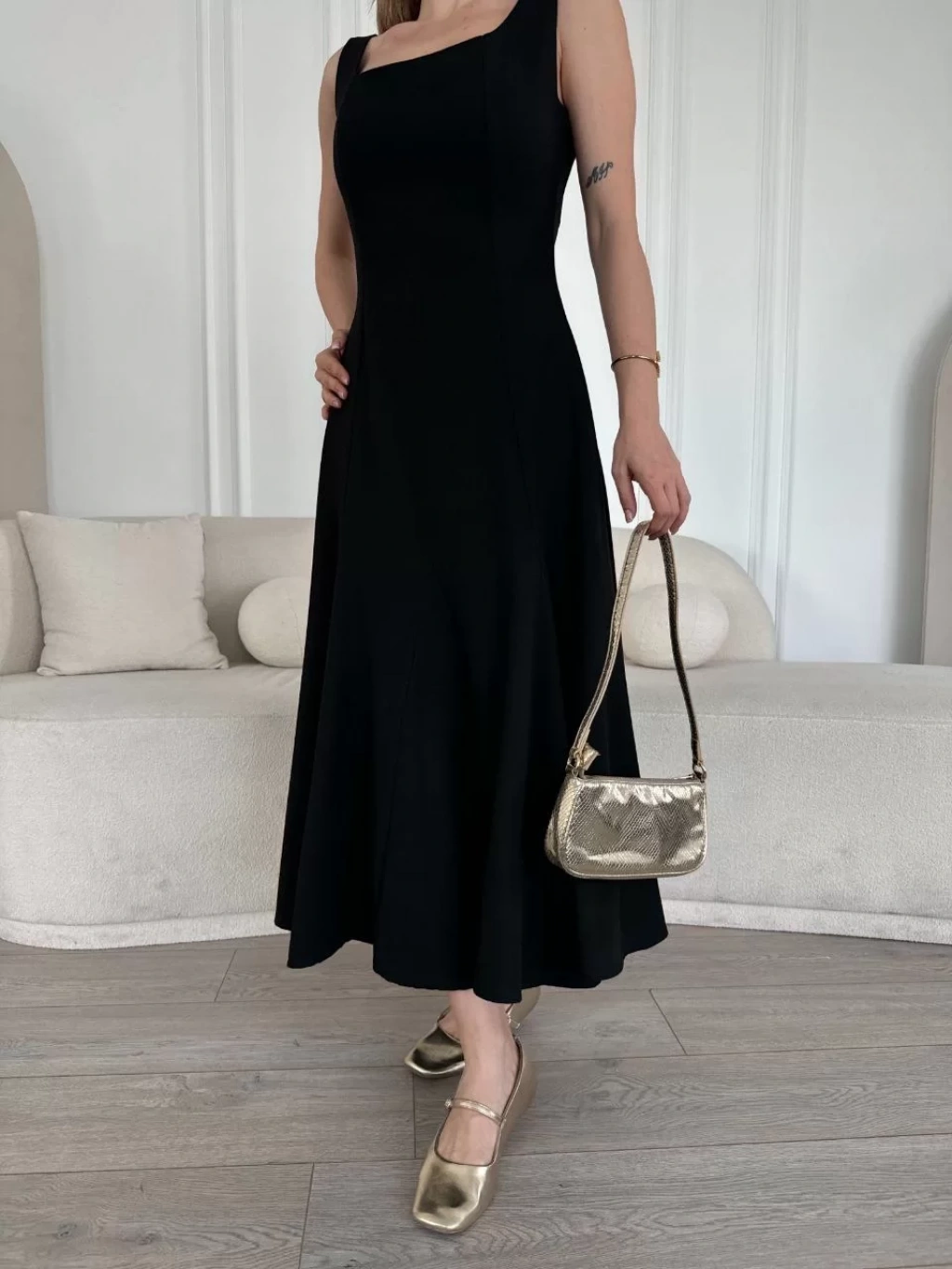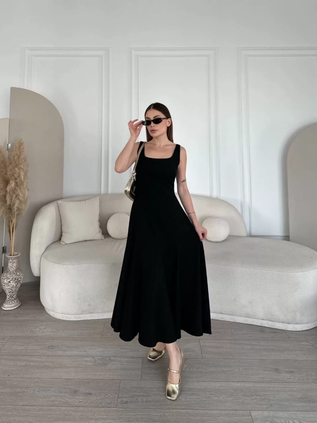 Sırt Dekolteli Kolsuz Uzun Elbise - Siyah