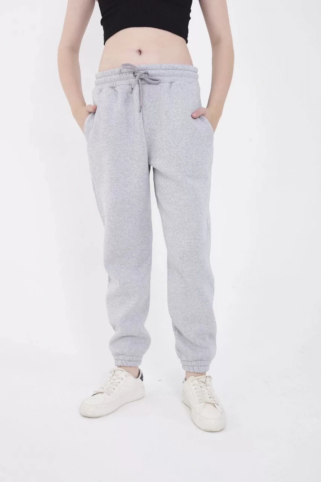Üç İplik Basic Lastikli Eşofman Pantolon - Gri