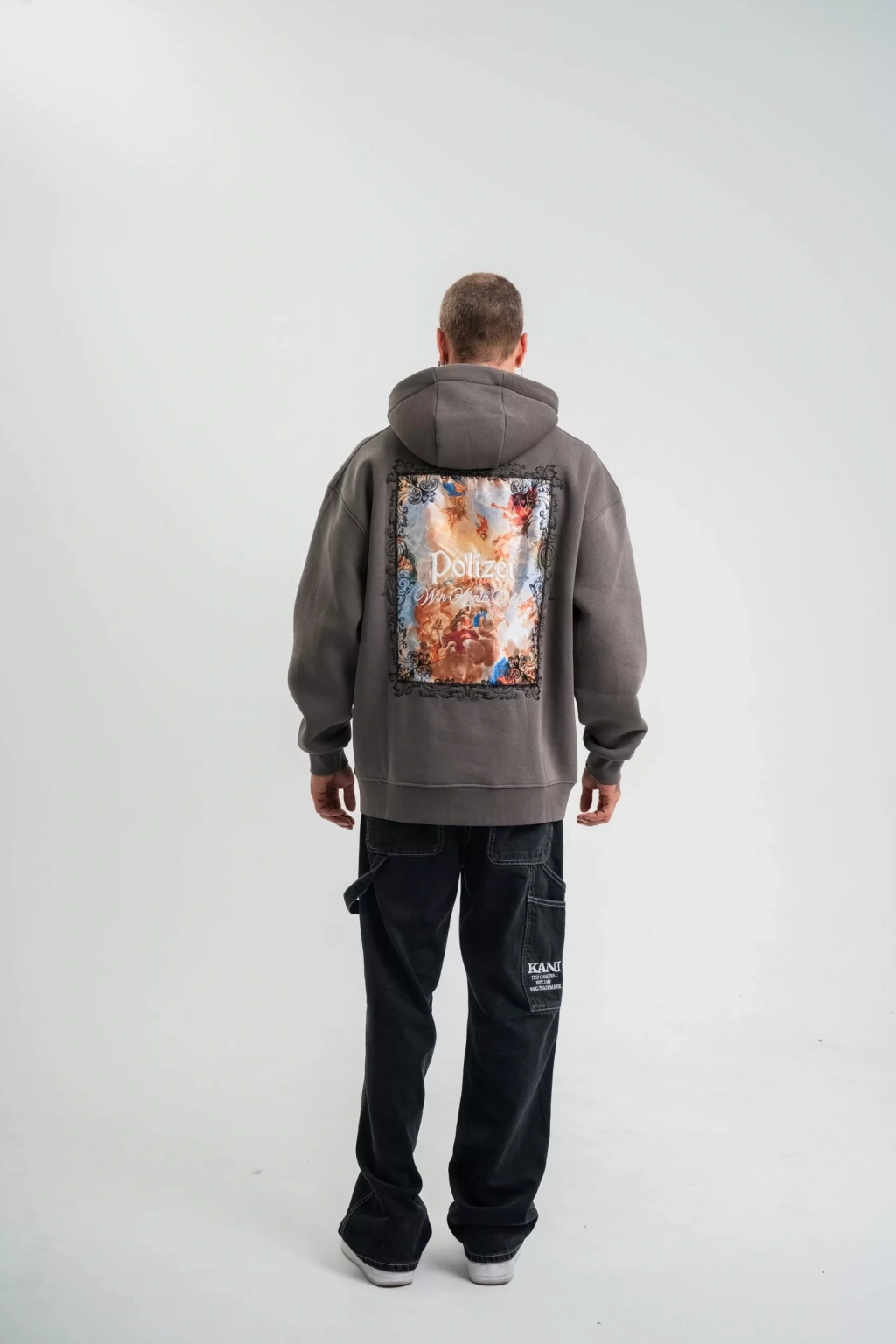 Üç İplik Kapşonlu Dijital Patchli SweatShirt - Füme
