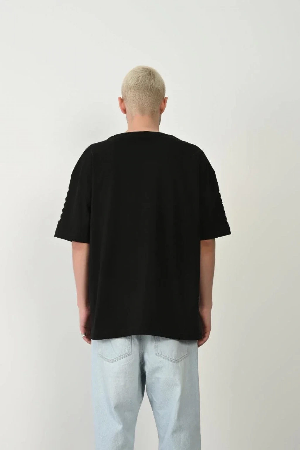 Unisex Baskılı Bisiklet Yaka Oversize T-Shirt - Siyah