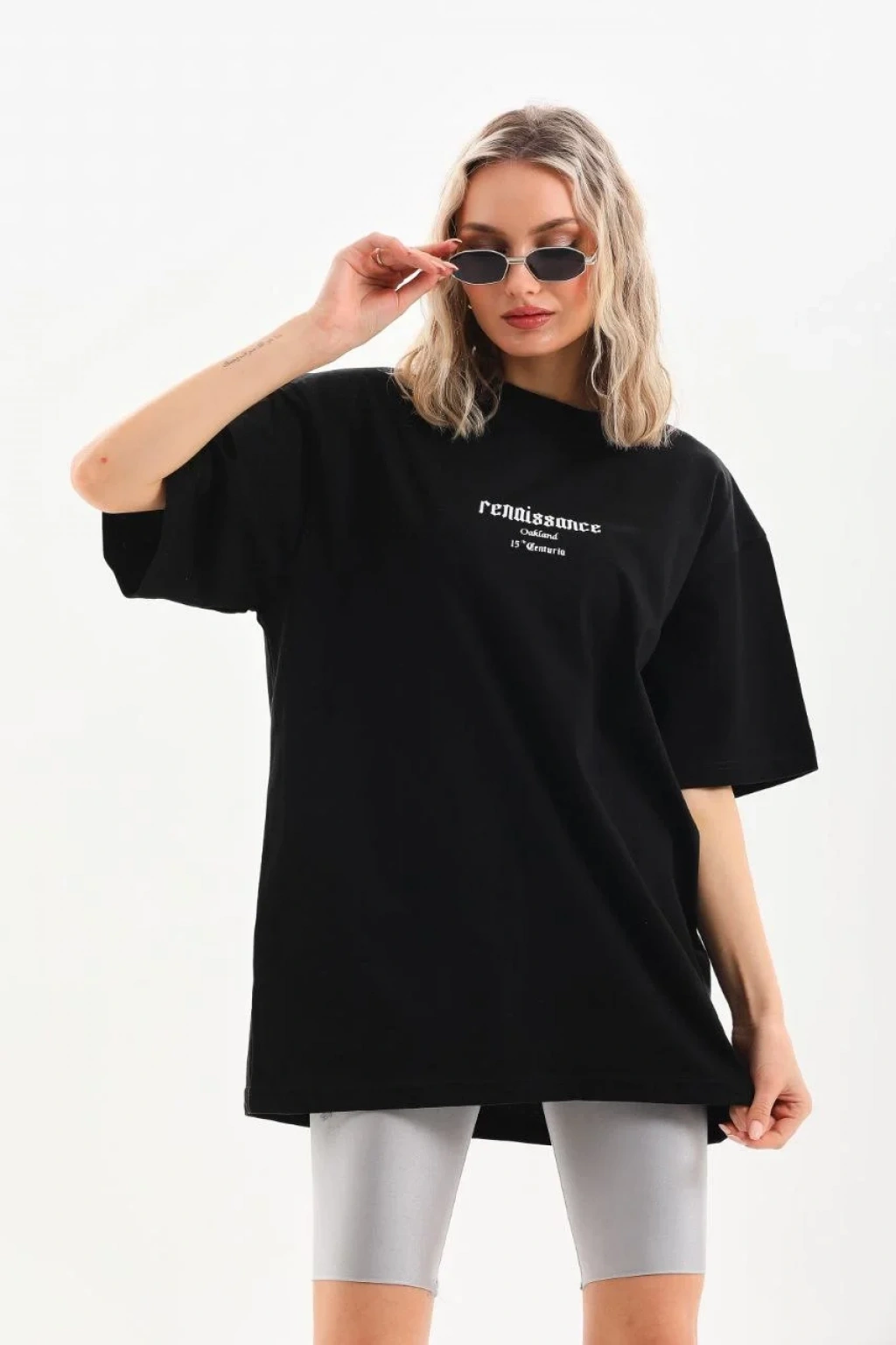 Unisex Baskılı Oversize T-Shirt - Siyah