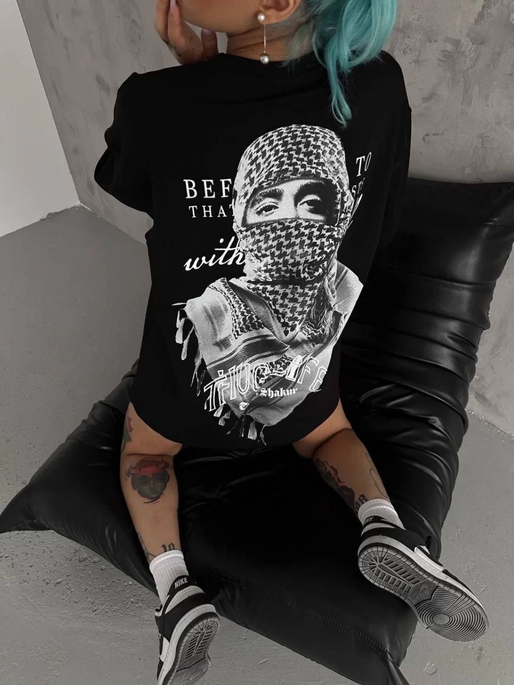 Unisex Baskılı Oversize T-Shirt - Siyah