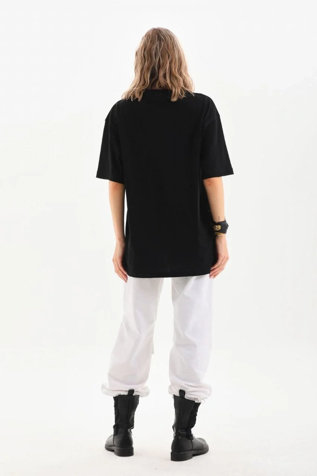 Unisex Bisiklet Yaka 20/1 Düz Oversize T-Shirt - Siyah