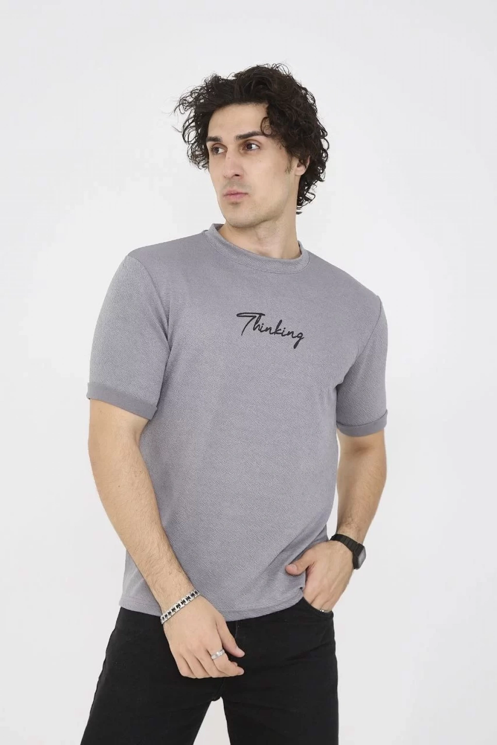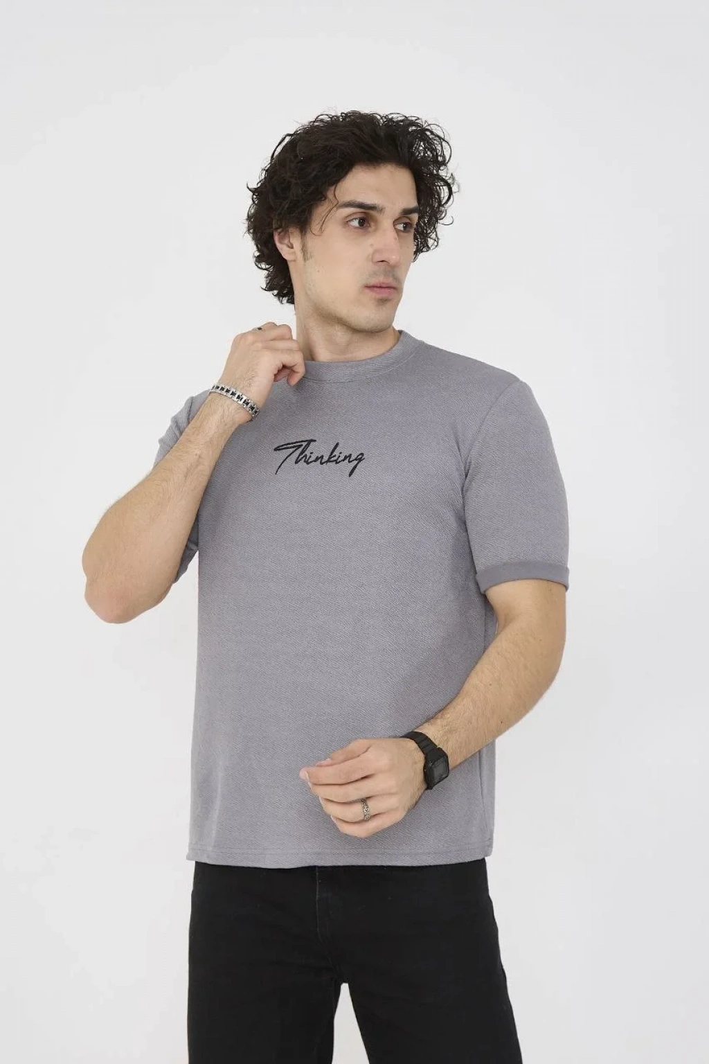 Unisex Bisiklet Yaka Slim fit T-Shirt- Gri