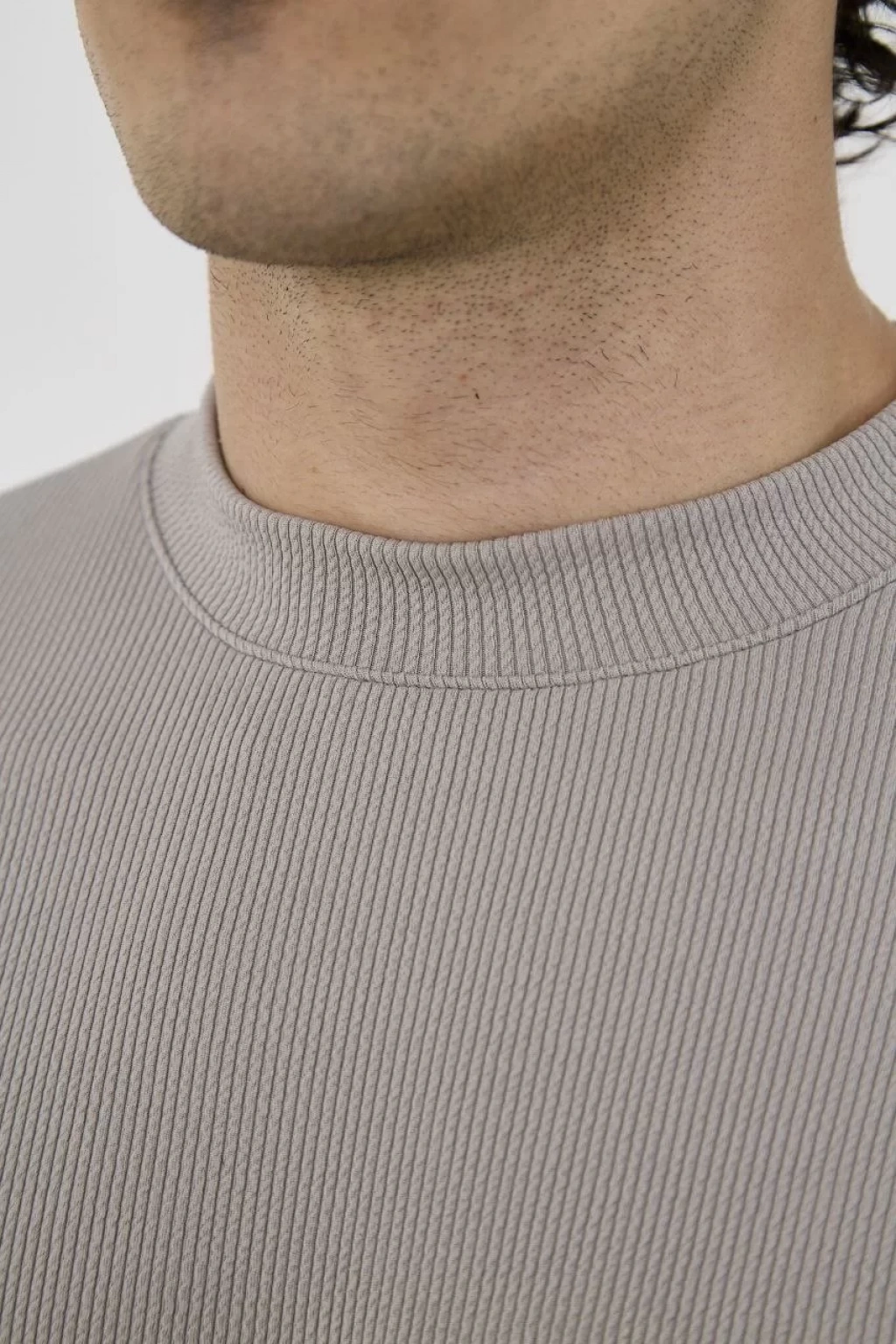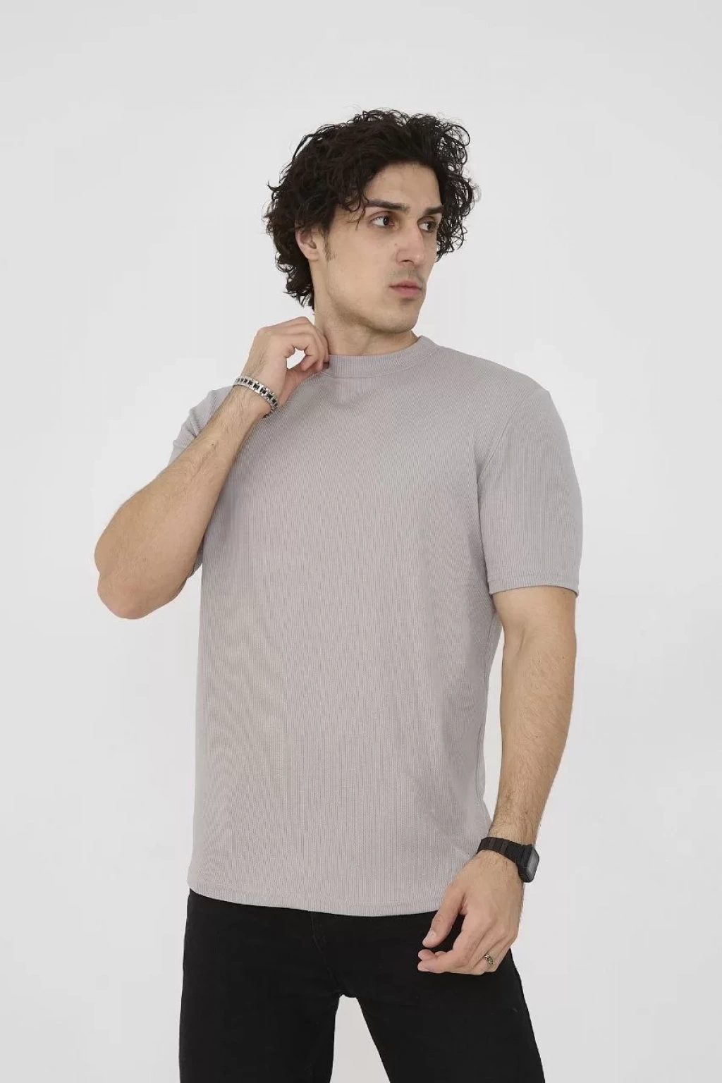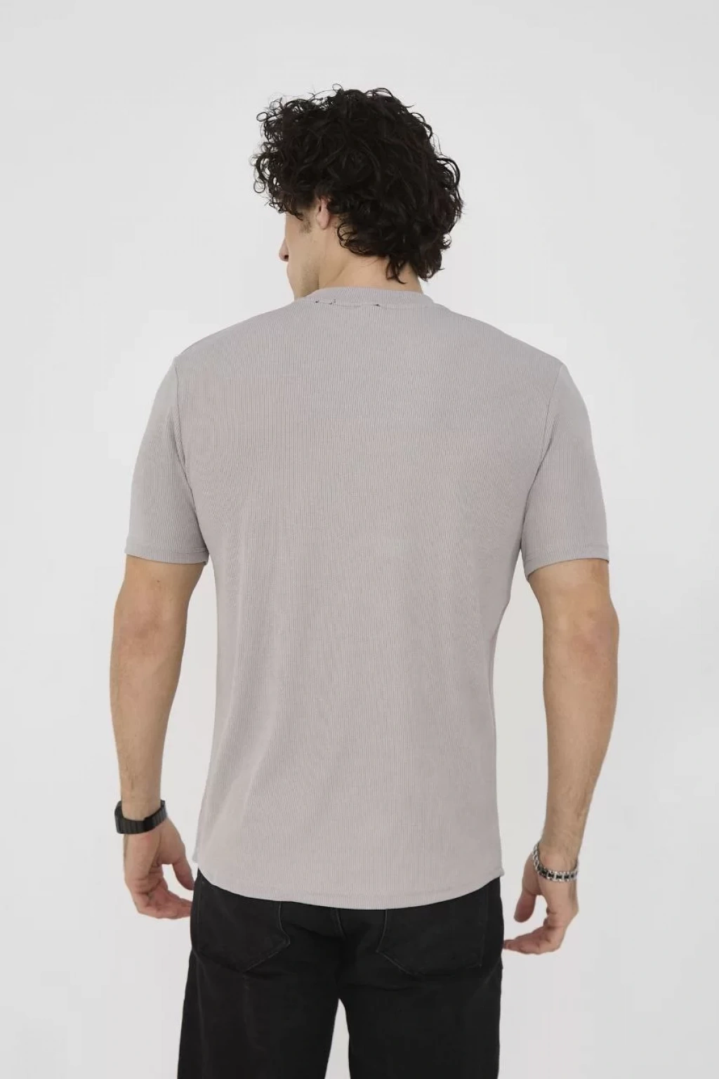 Unisex Bisiklet Yaka Slim fit T-Shirt- Taş