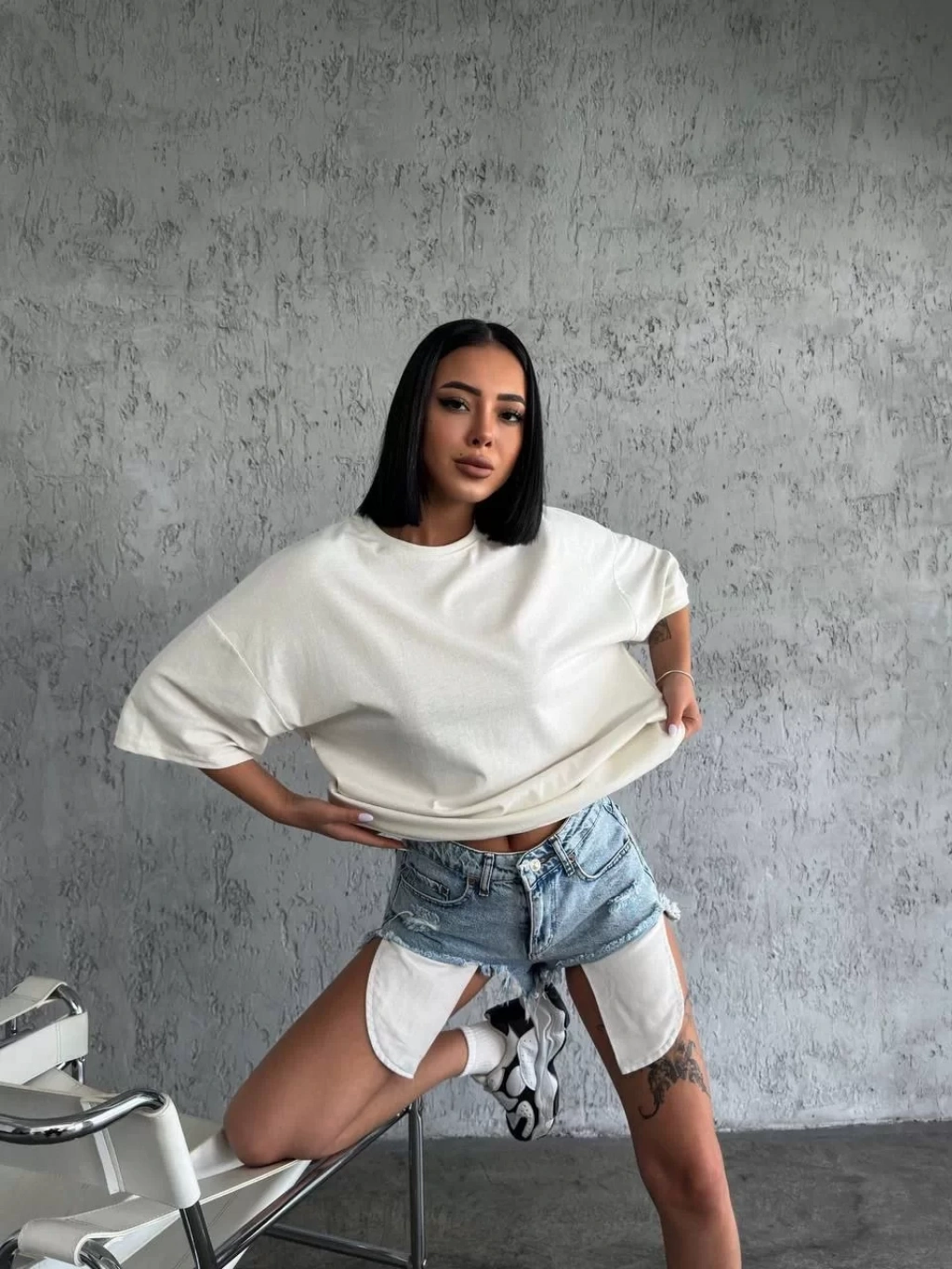 Unisex Düz Biskilet Yaka Oversize T-shirt - Beyaz