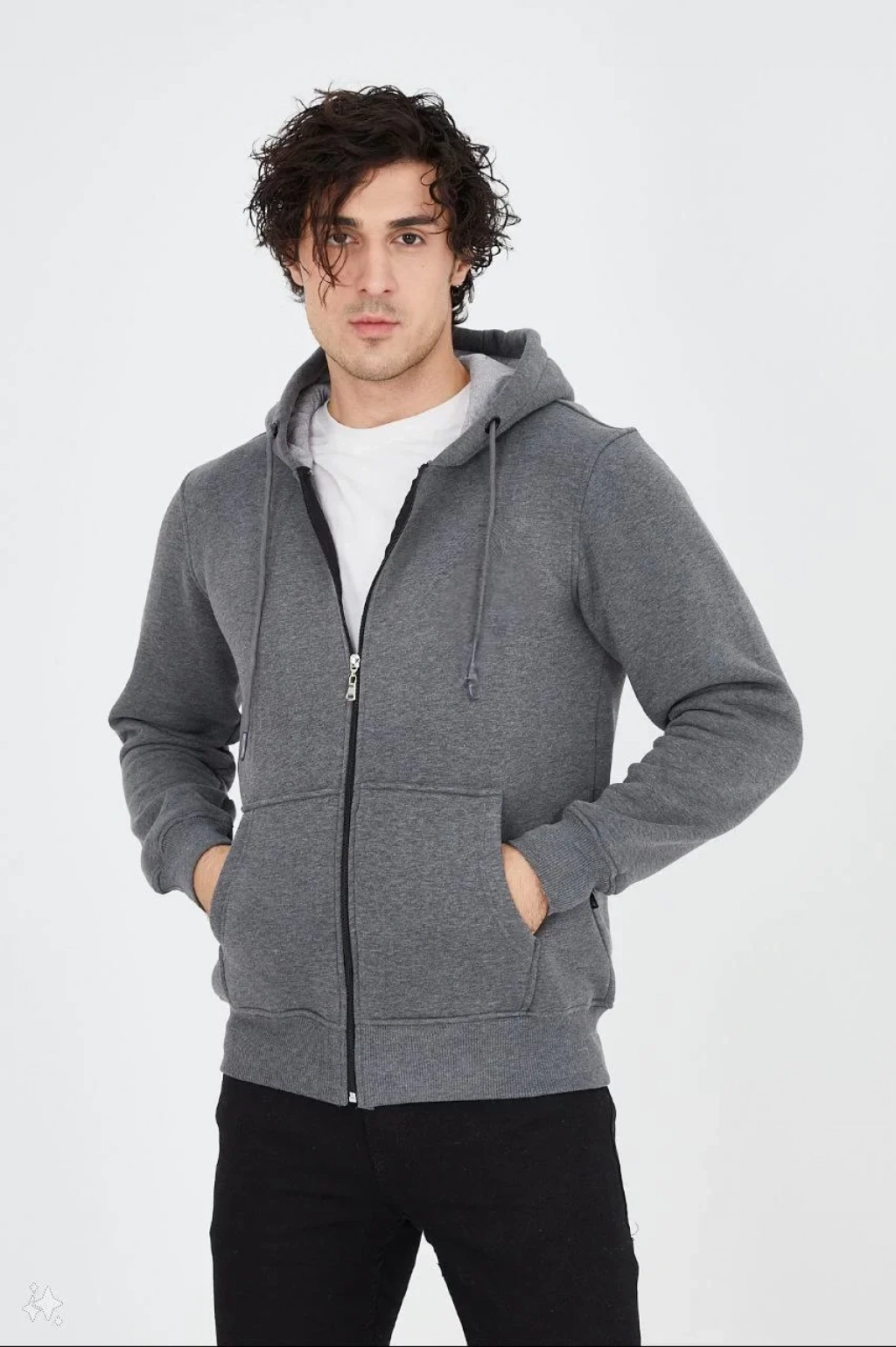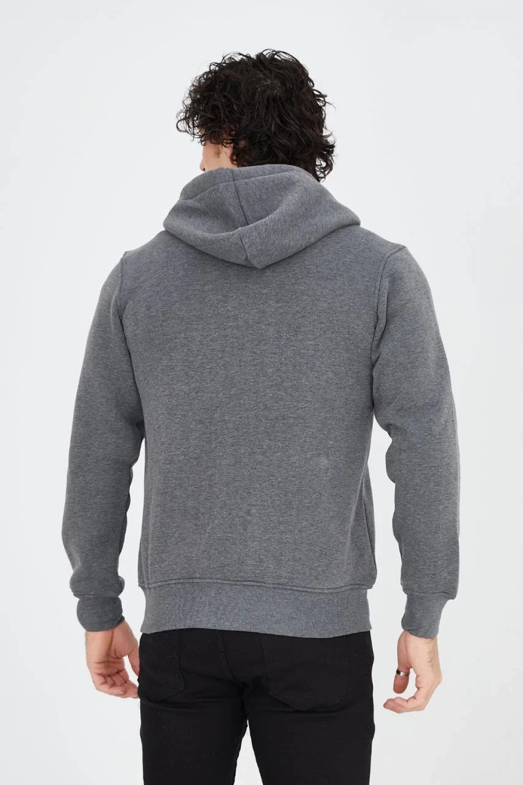 Unisex Tam Fermuarlı Kapşonlu  SweatShirt - Füme