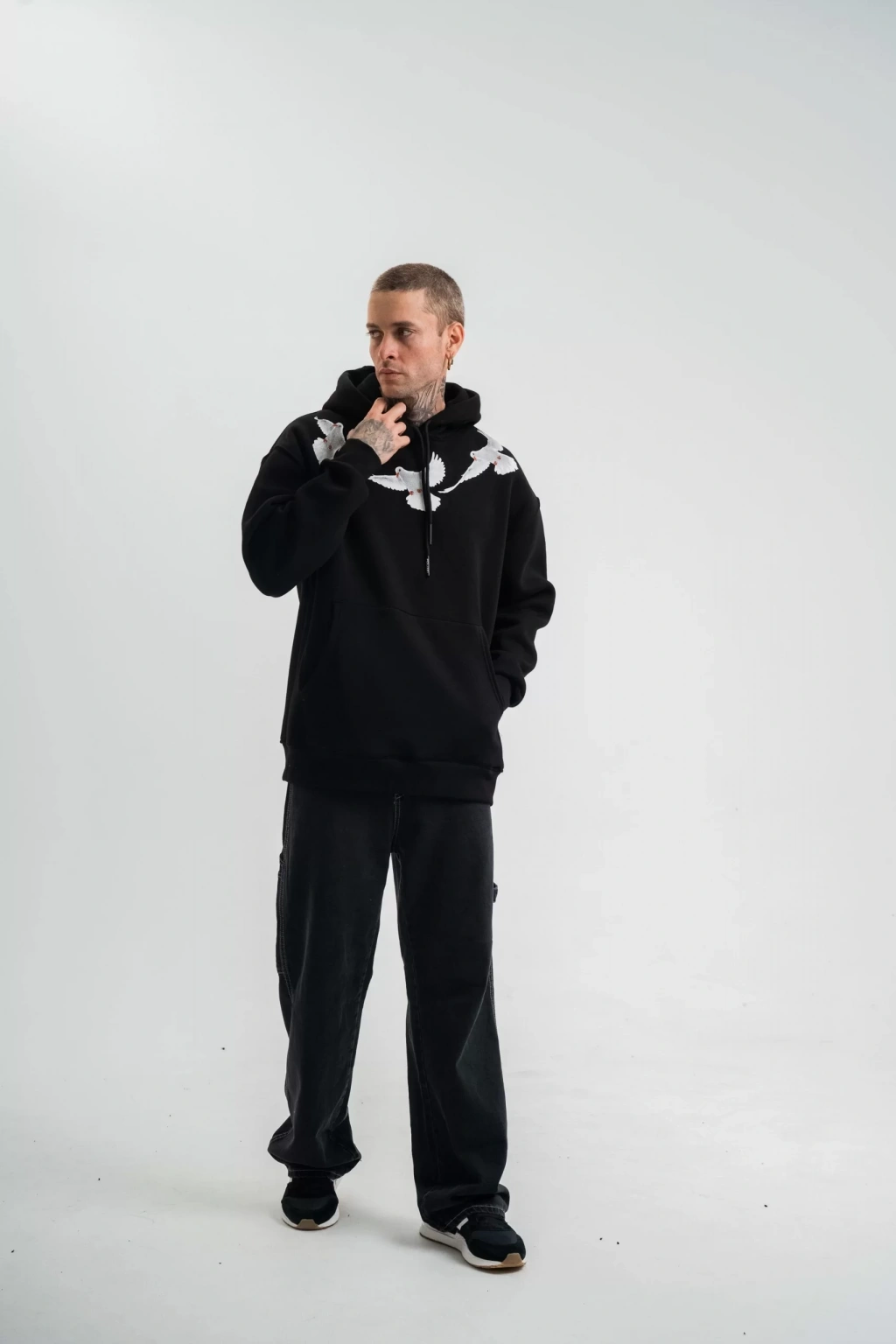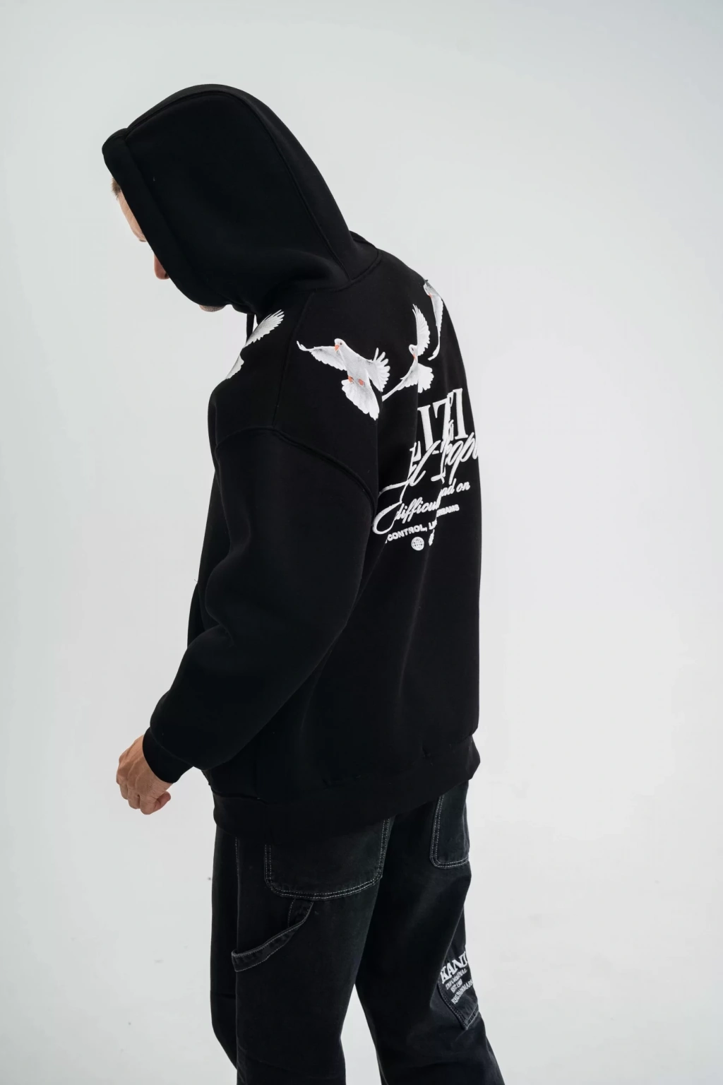 Unisex Uzun Kol Bisiklet Yaka Yıkamalı SweatShirt - Siyah