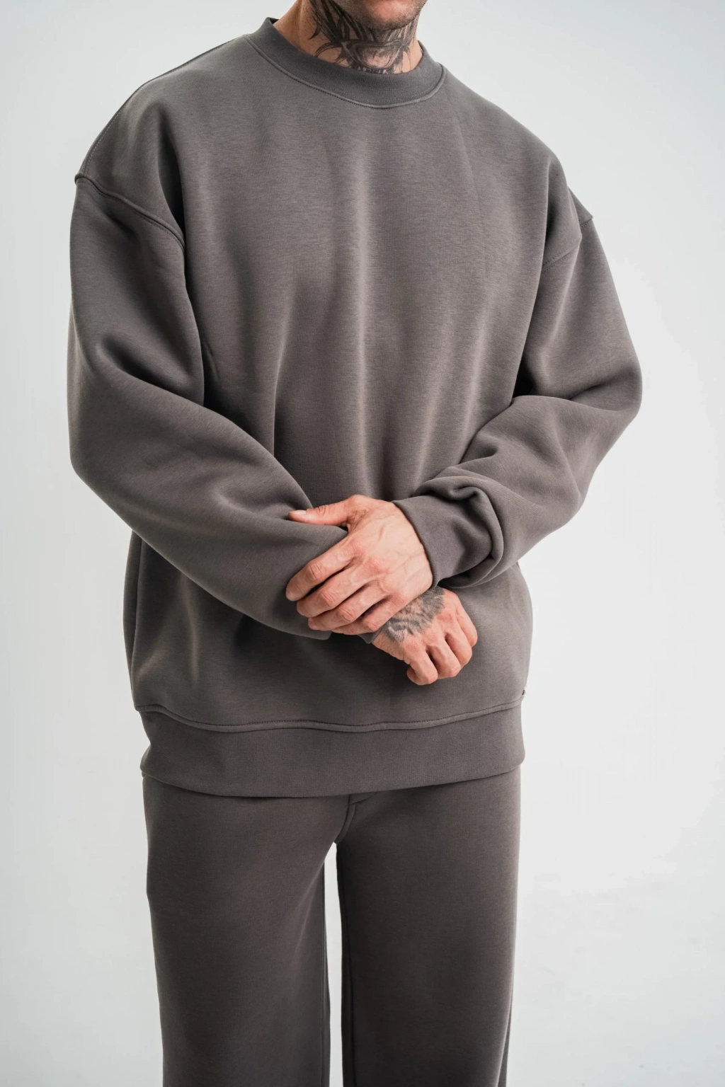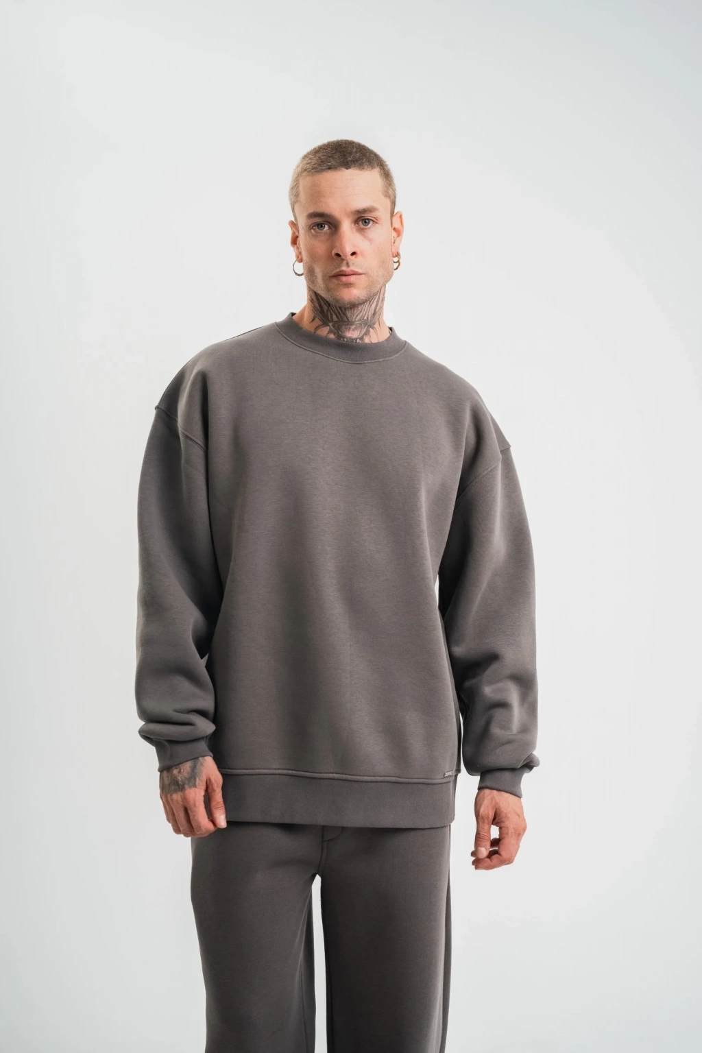 Uzun Kol Bisiklet Yaka Basic SweatShirt - Füme