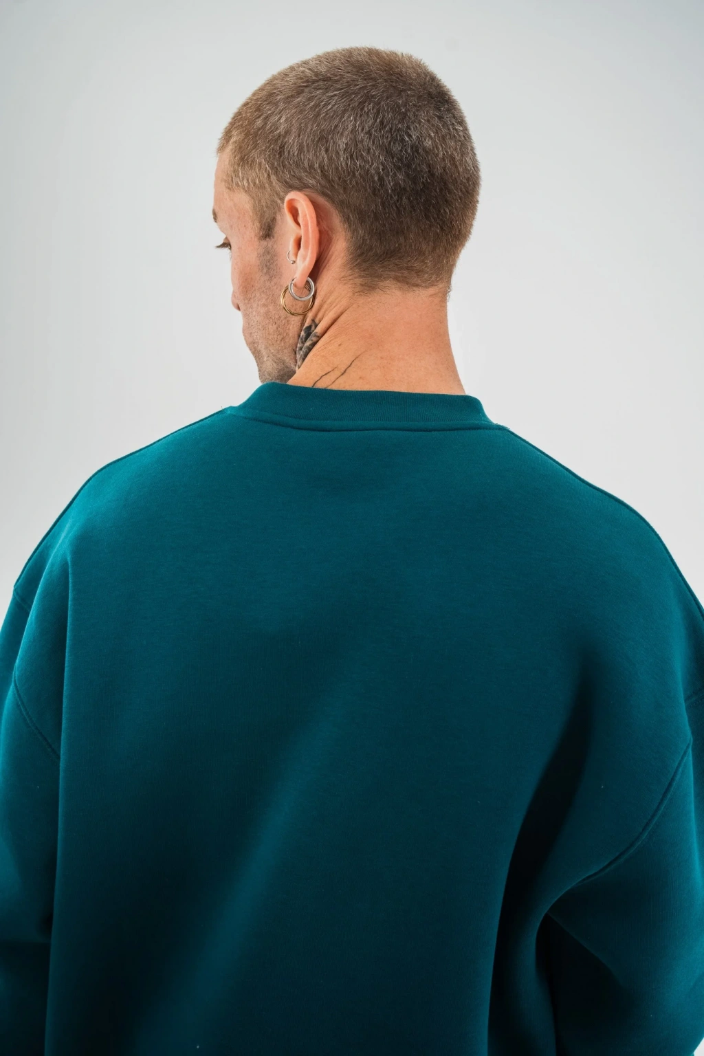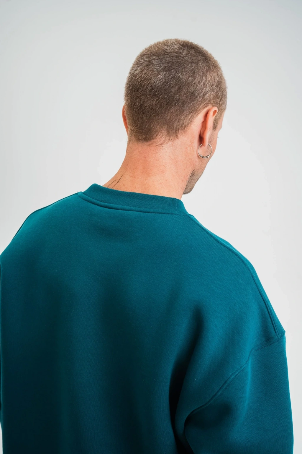 Uzun Kol Bisiklet Yaka Basic SweatShirt - Koyu Deniz Yeşili