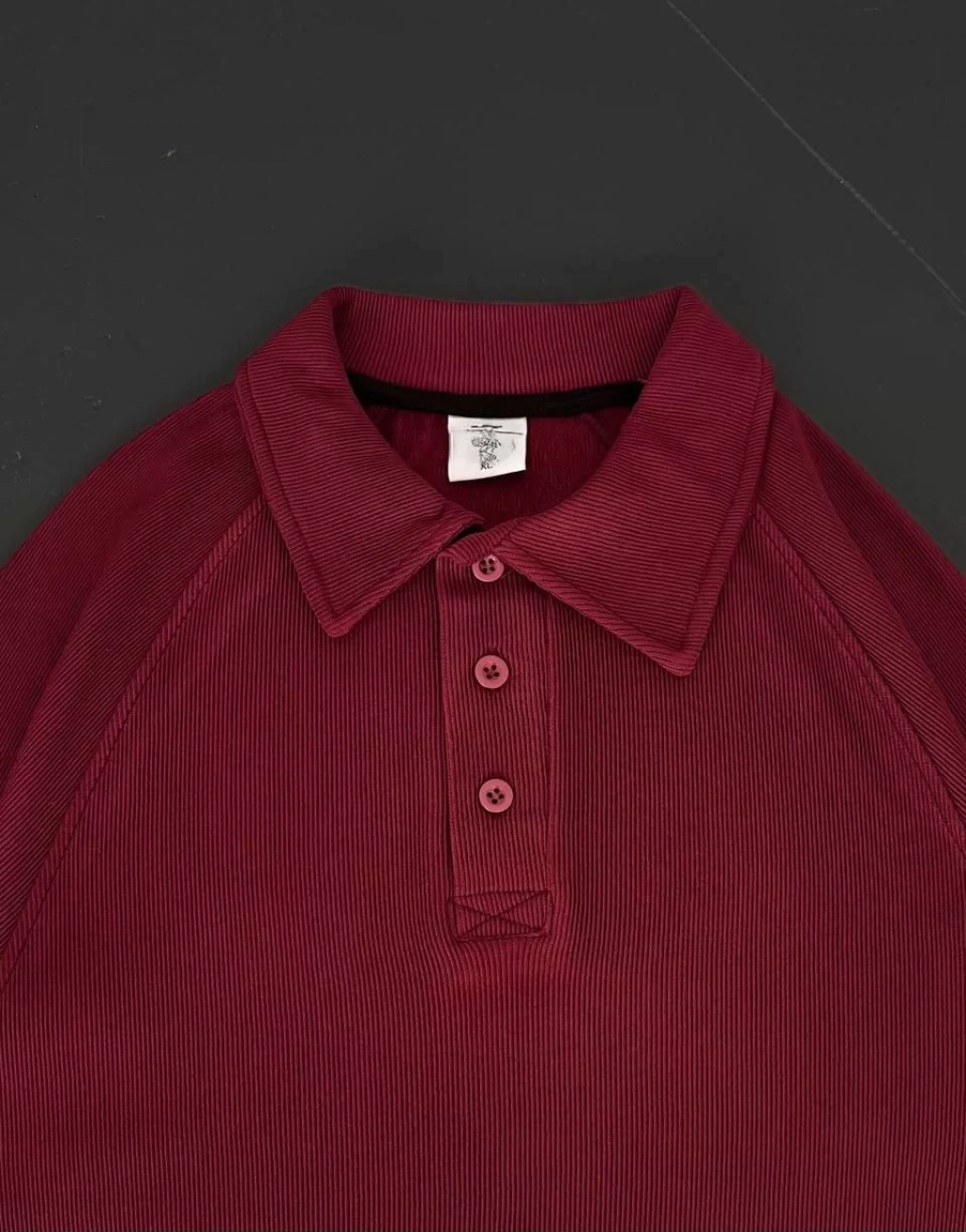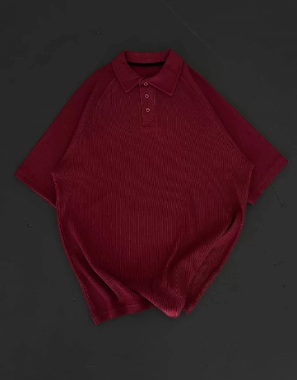 Yakalı Patlı Kısa Kol T-shirt - Bordo