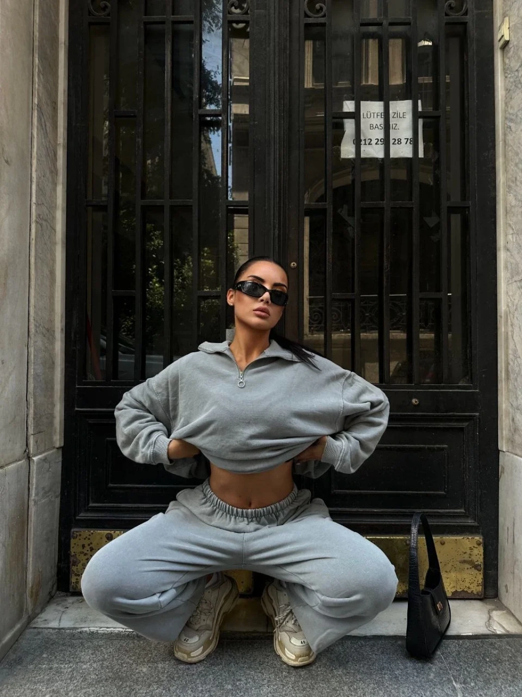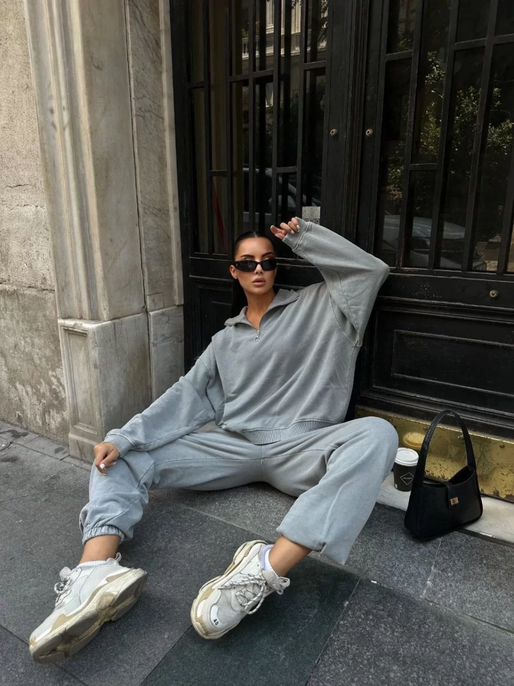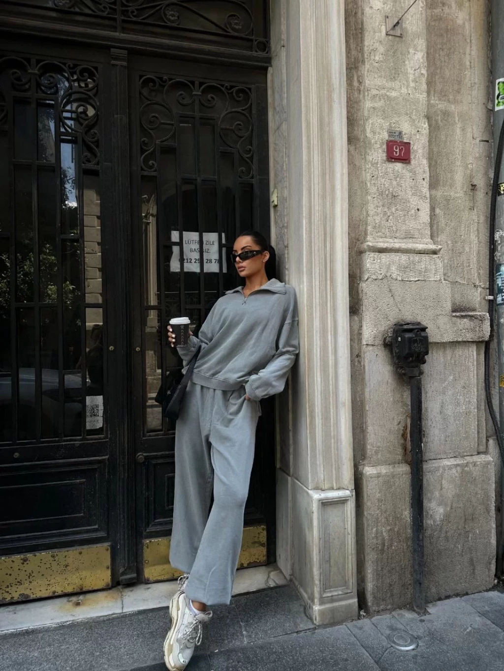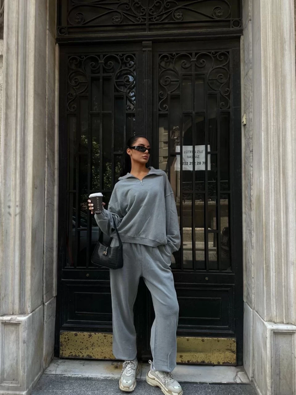 • - Sweatshirt ve pantolon olmak üzere iki parçadan oluşan